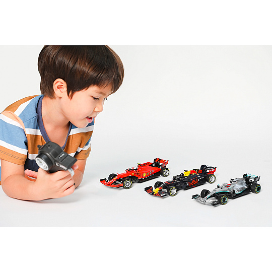 Tech RC, Racing Series. RC modely závodních formulí. Variaty: RC model 2021 Mercedes-AMG F1 - Lewis Hamilton, Frekvence: 2,4 GHz, závodit lze až se 4 modely najednou,baterie jsou součástí balení, vozidlo - vestavěná akumulátorová baterie - nabíjení přes USB kabel, ovladač-2ks 1,5V AAA, dosah vysílače-cca 35 metrů, doba jízdy-20 minut, rychlost-7,9 km/h, délka modelu cca 20 cm. No.5 Sebastian Vettel, No.16 Charles Leclerc. Frekvence: 2,4 GHz, závodit lze až se 4 modely najednou,baterie jsou součástí balení, vozidlo - vestavěná akumulátorová baterie - nabíjení přes USB kabel, ovladač-2ks 1,5V AAA, dosah vysílače-cca 35 metrů, doba jízdy-20 minut, rychlost-7,9 km/h, délka modelu cca 20 cm. Max Verstappen - Frekvence: 2,4 GHz, závodit lze až se 4 modely najednou, baterie jsou součástí balení, vozidlo - vestavěná akumulátorová baterie - nabíjení přes USB kabel, ovladač-2ks 1,5V AAA, dosah vysílače-cca 35 metrů, doba jízdy-20 minut, rychlost-7,9 km/h, délka modelu cca 20 cm. Nevhodné pro dě