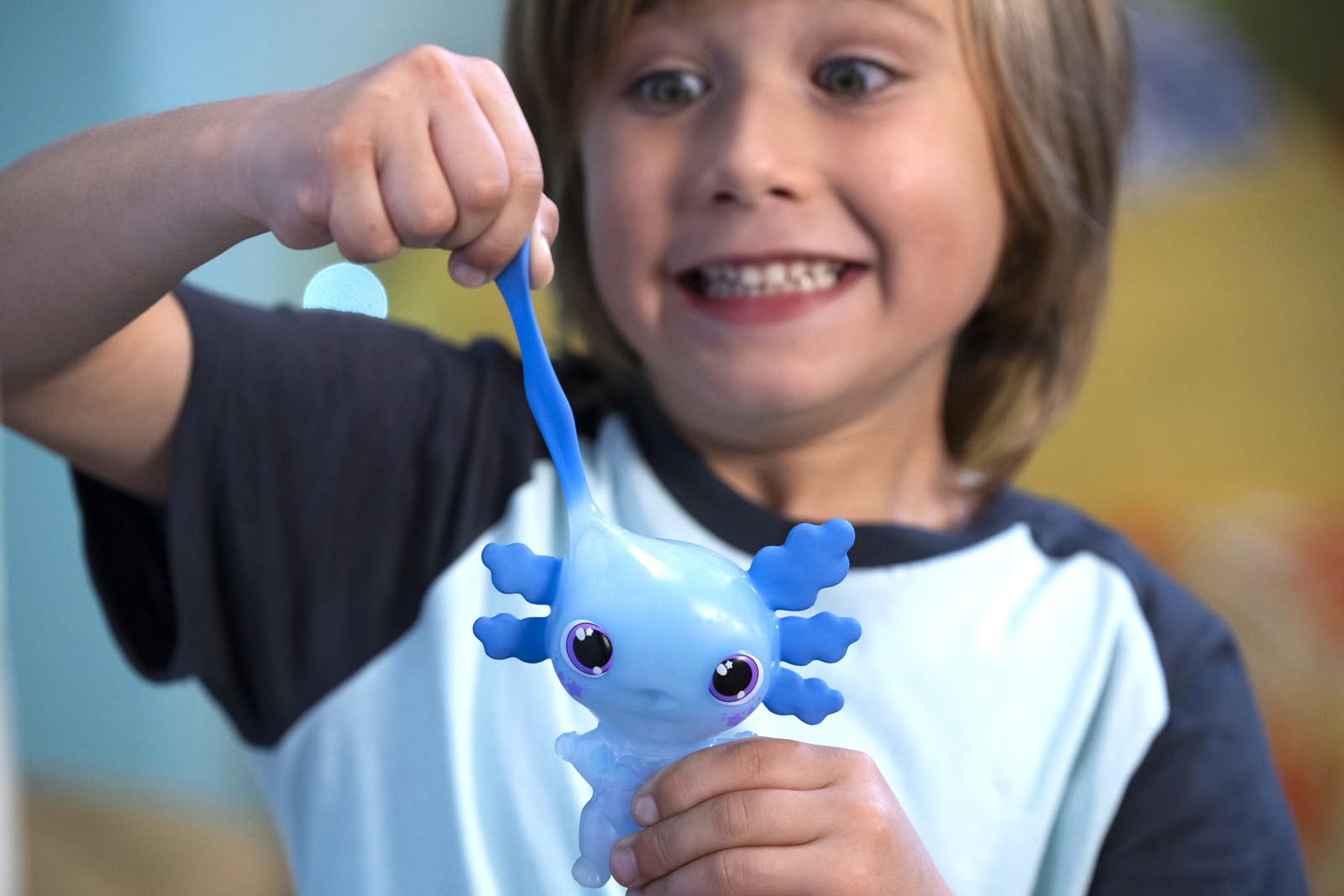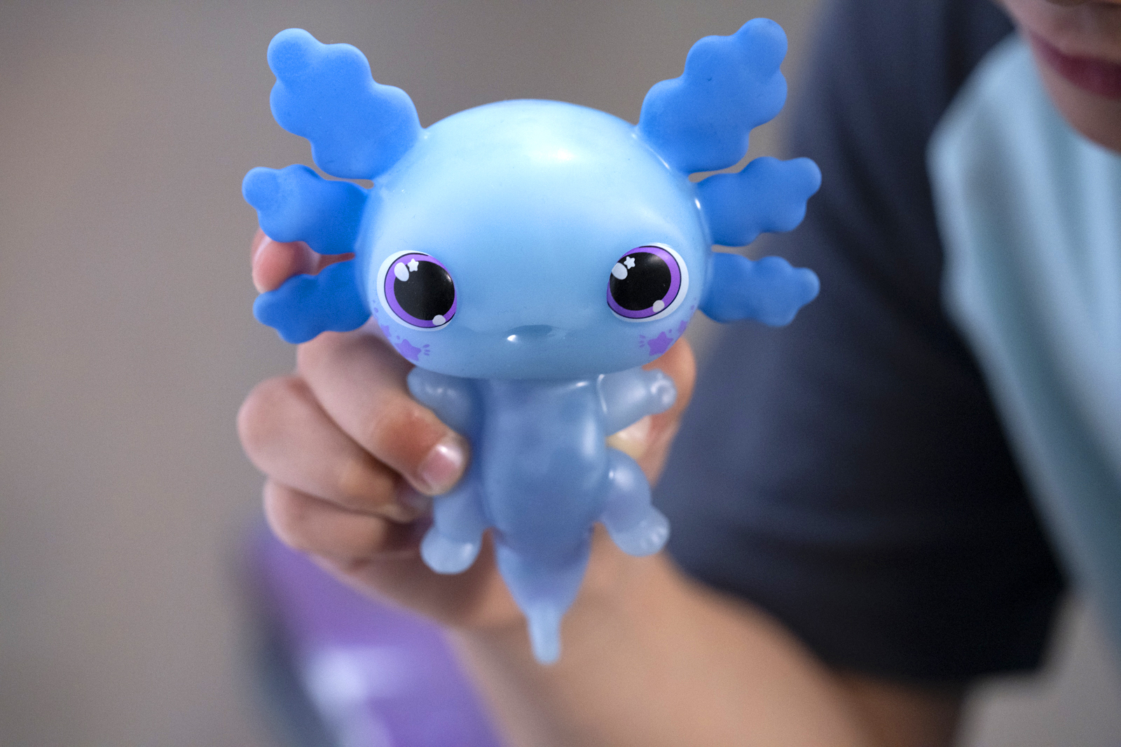 Figurka axolotla, která po ponoření do vody začne svítit. Tato hračka je vyrobena z měkkého, pružného materiálu, který je příjemný pro dětské ručičky.