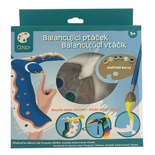 Vymaluj si ptáčka dle své fantazie. Ptáček je tak skvěle vyvážen, že drží na zobáčku na jakémkoliv rovném povrchu.
