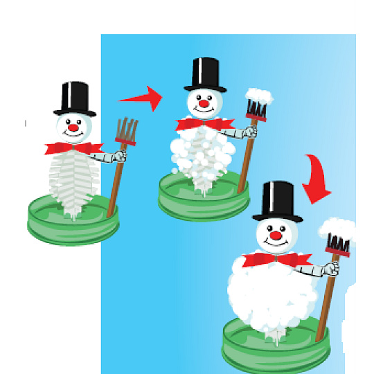 Výroba sněhuláka. Sestav sněhuláka z papíru, nalij kouzelnou tekutinu do mističky a divej se, jak se sněhulák tvoří.