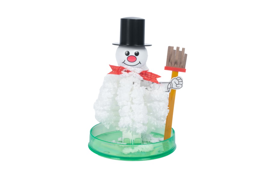 Výroba sněhuláka. Sestav sněhuláka z papíru, nalij kouzelnou tekutinu do mističky a divej se, jak se sněhulák tvoří.