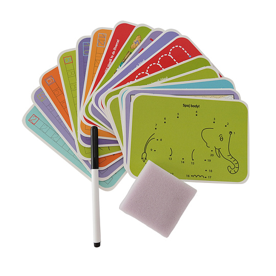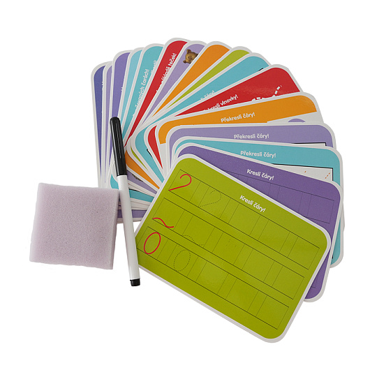 Edukativní sada čísla trénuje šikovnost a soustředěnost dítěte. Uči děti být pečlivý a trpělivý. Sada obsahuje 16 výukových kartiček, speciálni fix, který jde smazat a houbičku. Kartičky jsou opakovatelně použitelné.