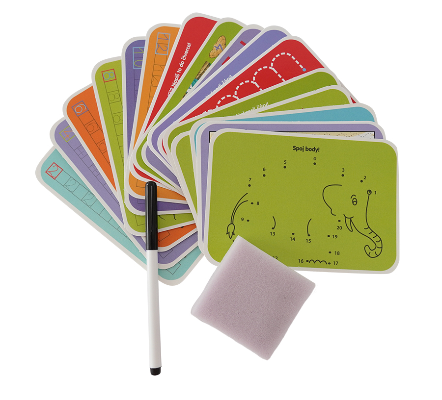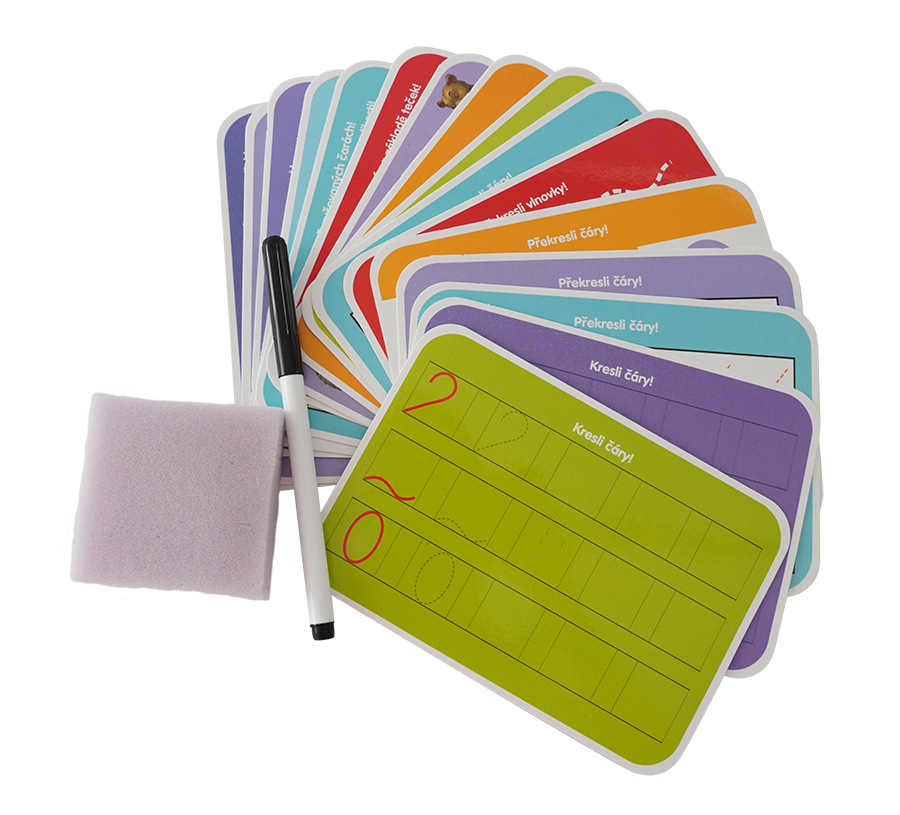 Edukativní sada čísla trénuje šikovnost a soustředěnost dítěte. Uči děti být pečlivý a trpělivý. Sada obsahuje 16 výukových kartiček, speciálni fix, který jde smazat a houbičku. Kartičky jsou opakovatelně použitelné.