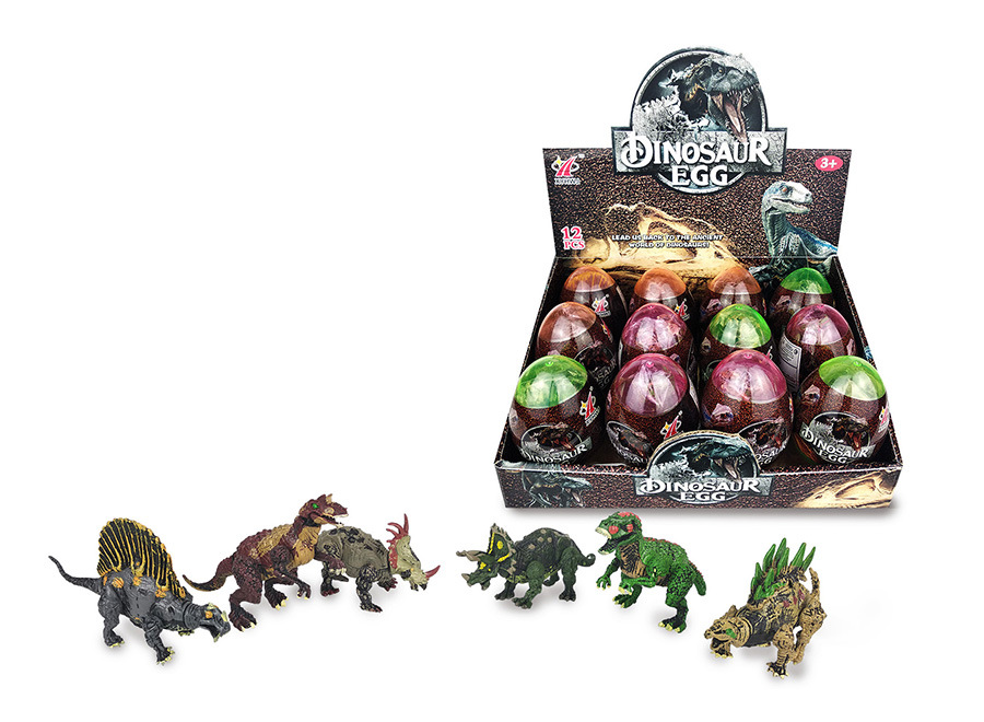 Vajíčko, ve kterém je schovaná plastová figurka dinosaura. 6 různých dinosaurů, nasbírej je všechny.