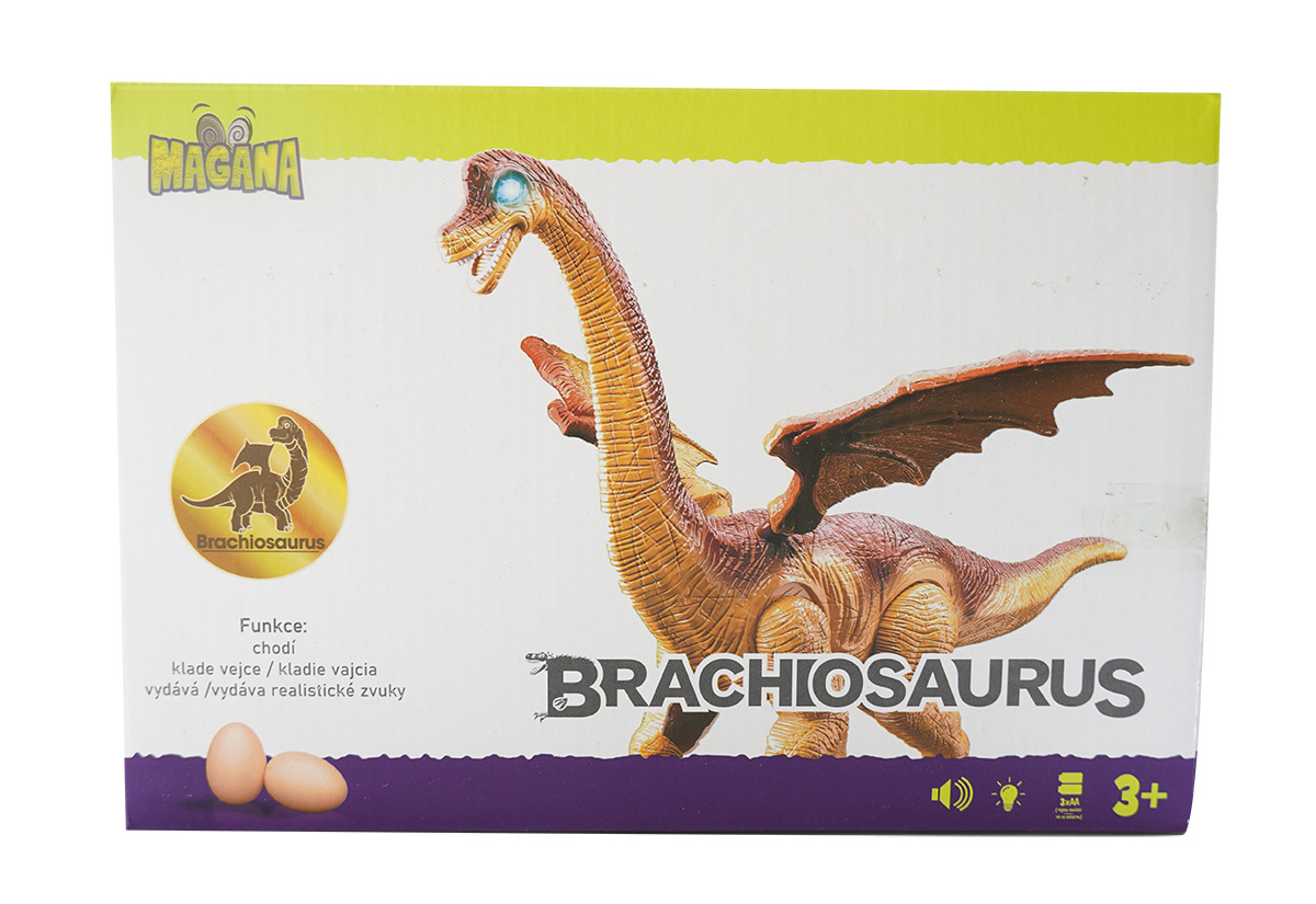 Dinosaurus chodí, vydává zvuk, svítí a snáší vejce. Velikost 45 cm.