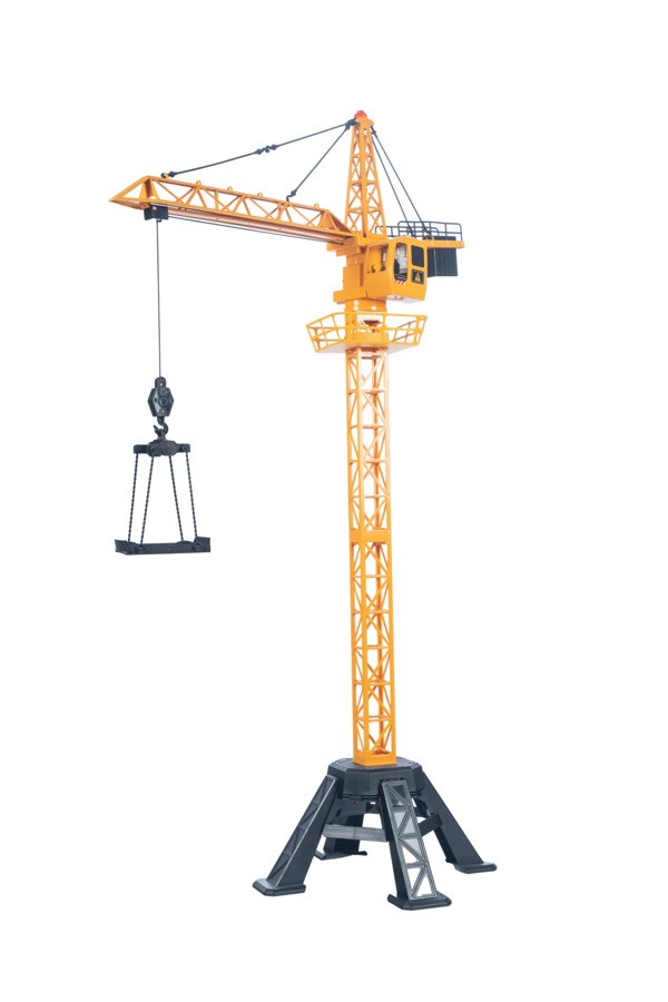 Jeřáb RC na dálkové ovládání se světelnými efekty. Výška jeřábu 100 cm. Otáčí se o 350°. Plošina jezdí nahoru a dolů.