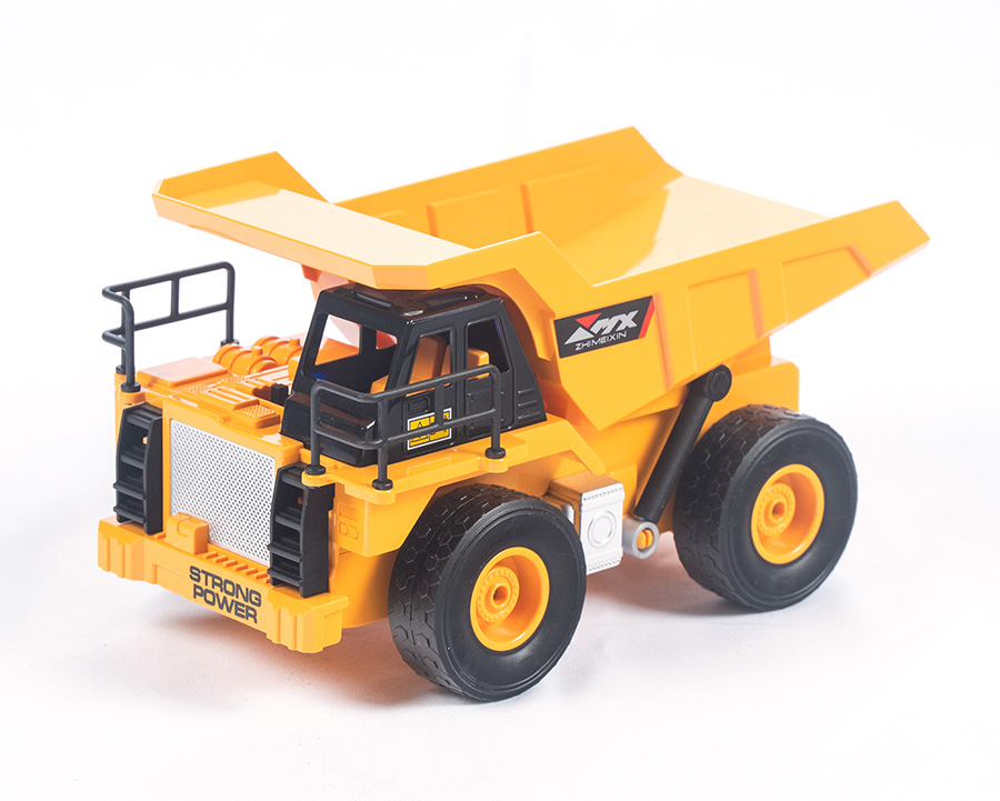 RC sklápěčka na dálkové ovládání se světelnými efekty. Jezdí všemi směry.