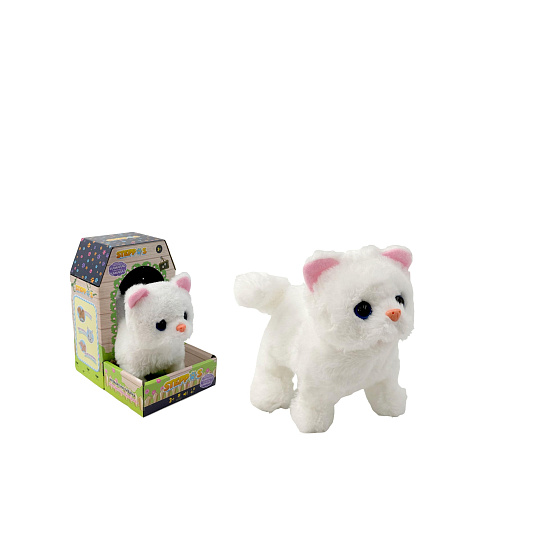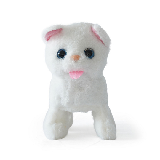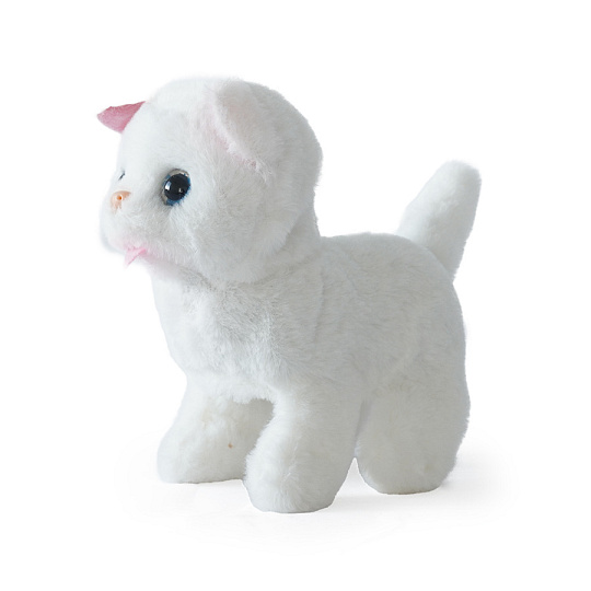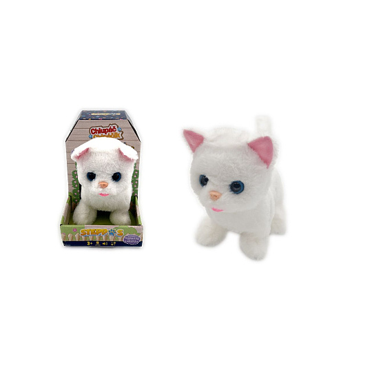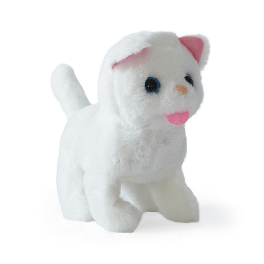 Kočička na baterie, která chodí, mňouká a hýbe ocáskem.