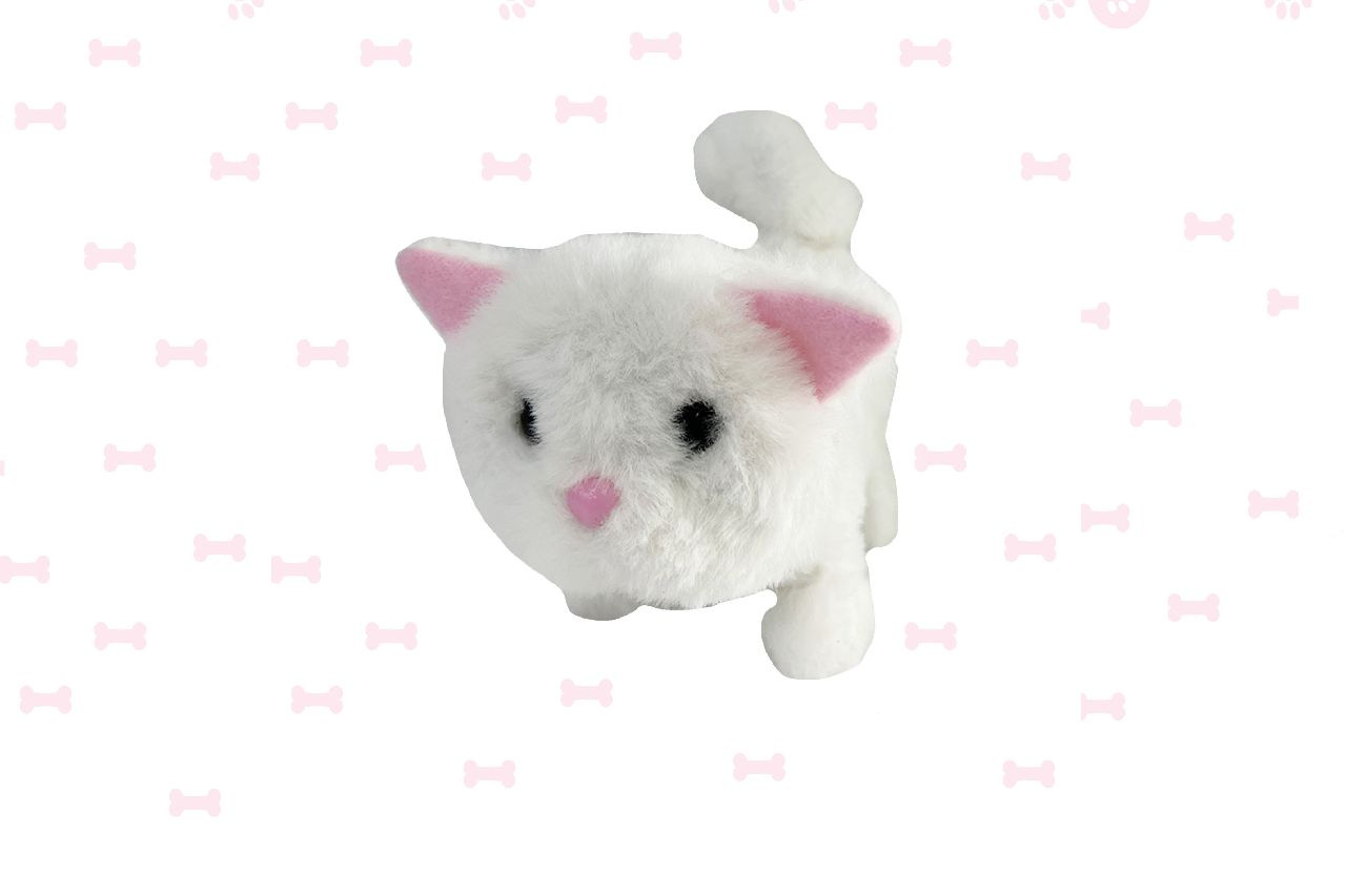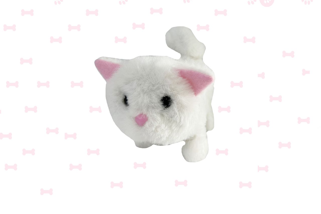 Kočička na baterie, která chodí, mňouká a hýbe ocáskem.