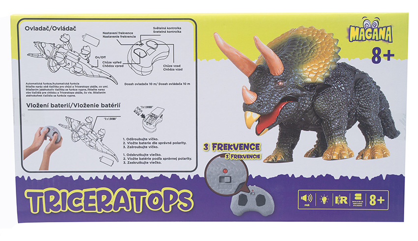 Triceratops RC na dálkové ovládání se světelnými efekty.
