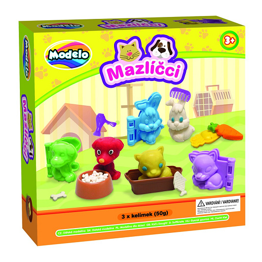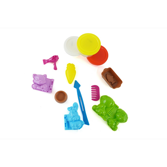 Kvalitní, lehce tvarovatelná modelína, která nevysychá. Balení obsahuje modelínu a tvořítka na výrobu domácích mazlíčků. 3 kelímky modelíny, 3 tvořítka na zvířátka, mističku, 2 tvořítka na jídlo pro zvířátka, hřebínek, fén a nožíček.