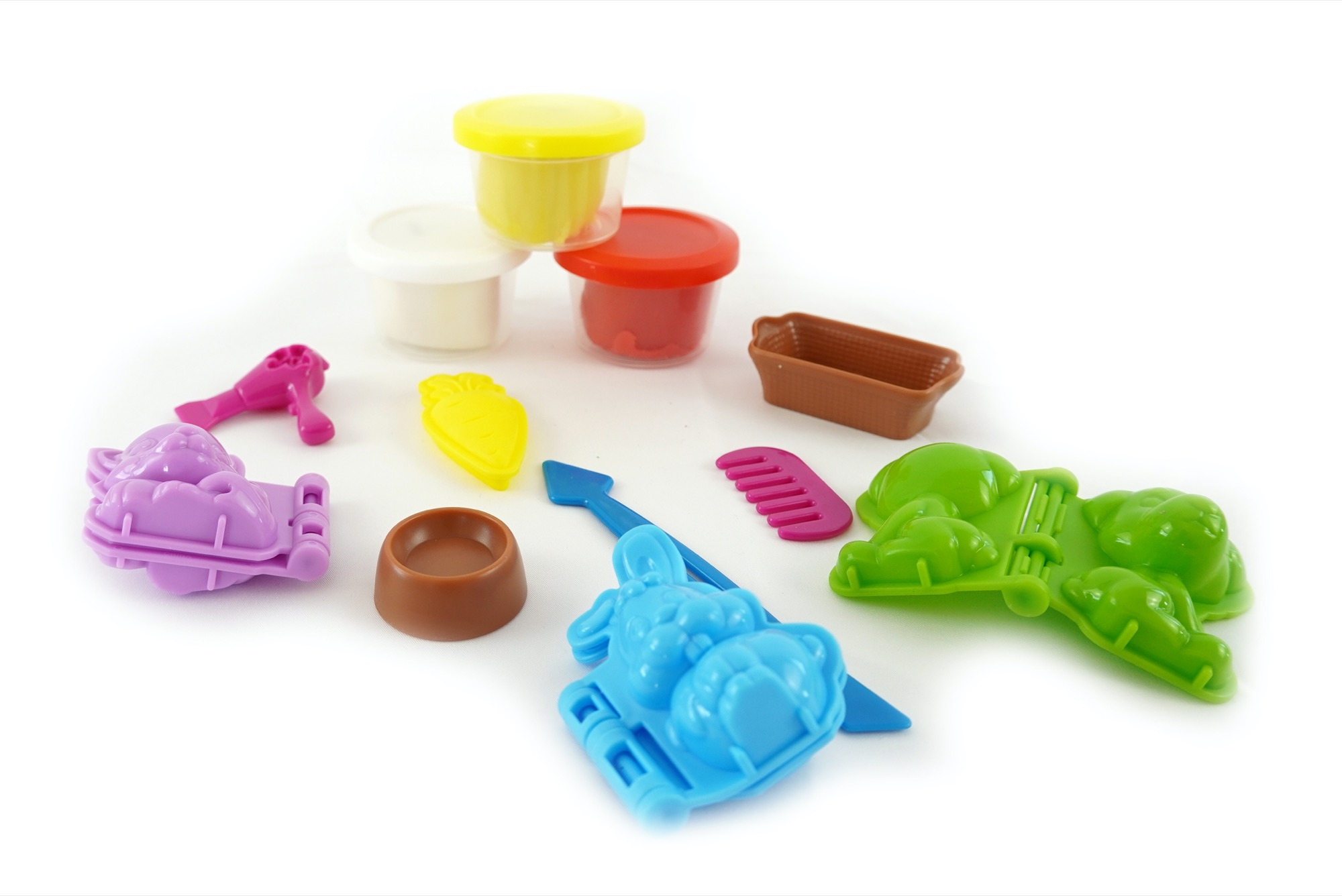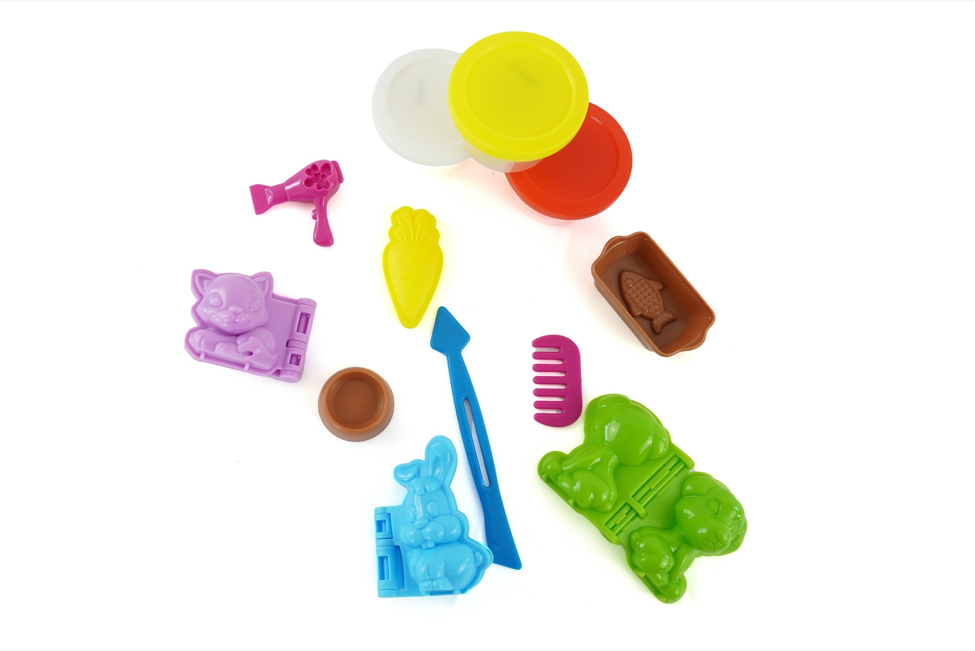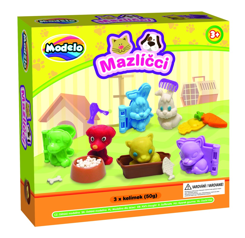 Kvalitní, lehce tvarovatelná modelína, která nevysychá. Balení obsahuje modelínu a tvořítka na výrobu domácích mazlíčků. 3 kelímky modelíny, 3 tvořítka na zvířátka, mističku, 2 tvořítka na jídlo pro zvířátka, hřebínek, fén a nožíček.