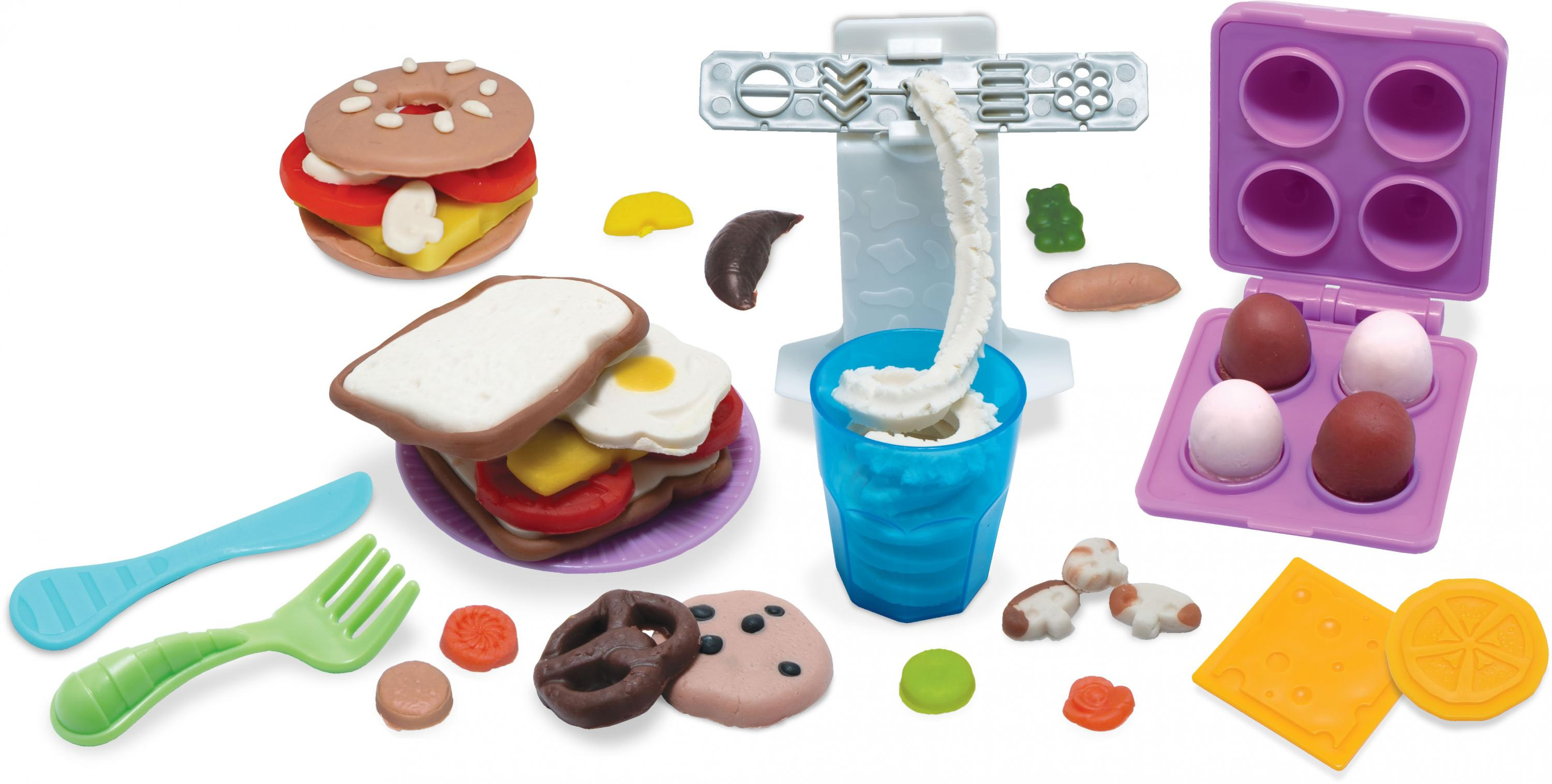 Modelína: Sada obsahuje modelínu v několika barvách, které se hodí na snídaňové pochoutky.