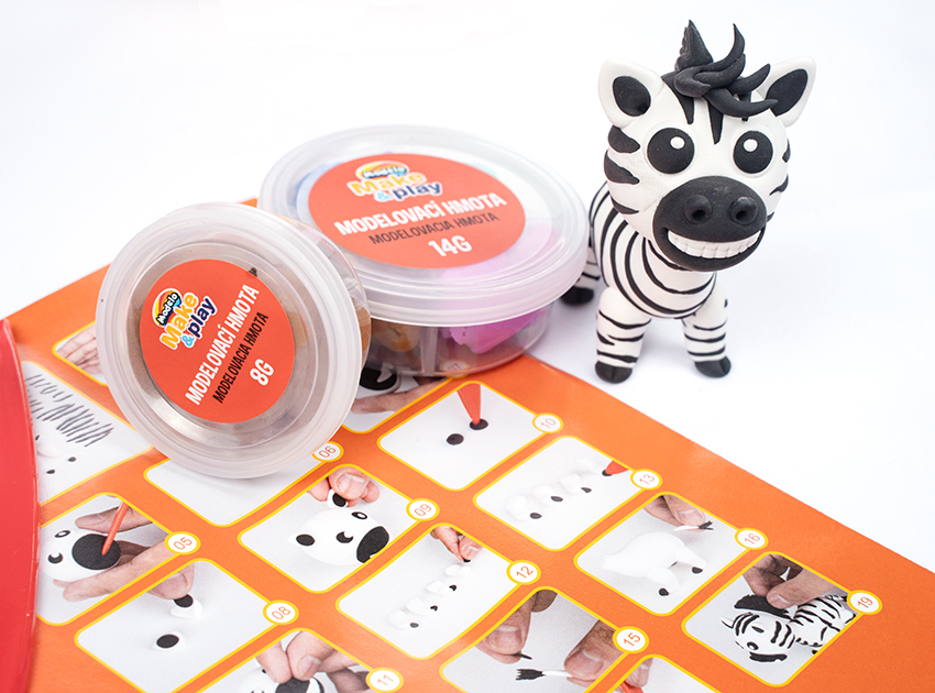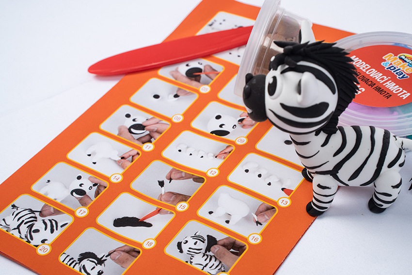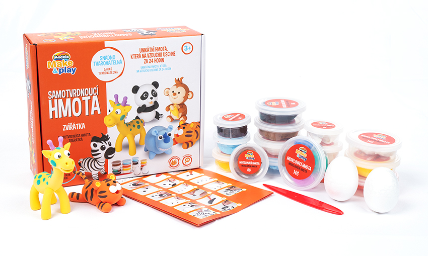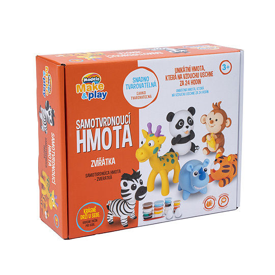 Samotvrdnoucí modelovací hmota. Prémiová kvalita, navíc oproti standardní modelíně po vymodelování na vzduchu sama vytvrdne. Děti si pak mohou se zvířátky dále hrát. Podporuje jemnou motoriku. Balení obsahuje 15 tub modelíny.