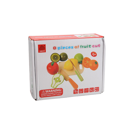 Krájecí dřeěné potraviny. Rozkroj jablko nebo citron. Hra pomáhá rozvoji dětské motoriky.