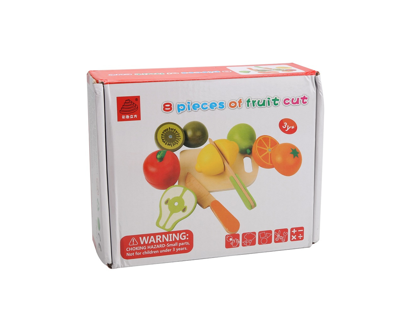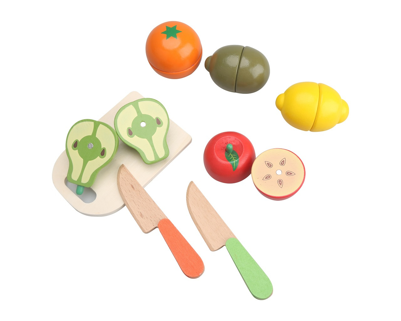 Krájecí dřeěné potraviny. Rozkroj jablko nebo citron. Hra pomáhá rozvoji dětské motoriky.