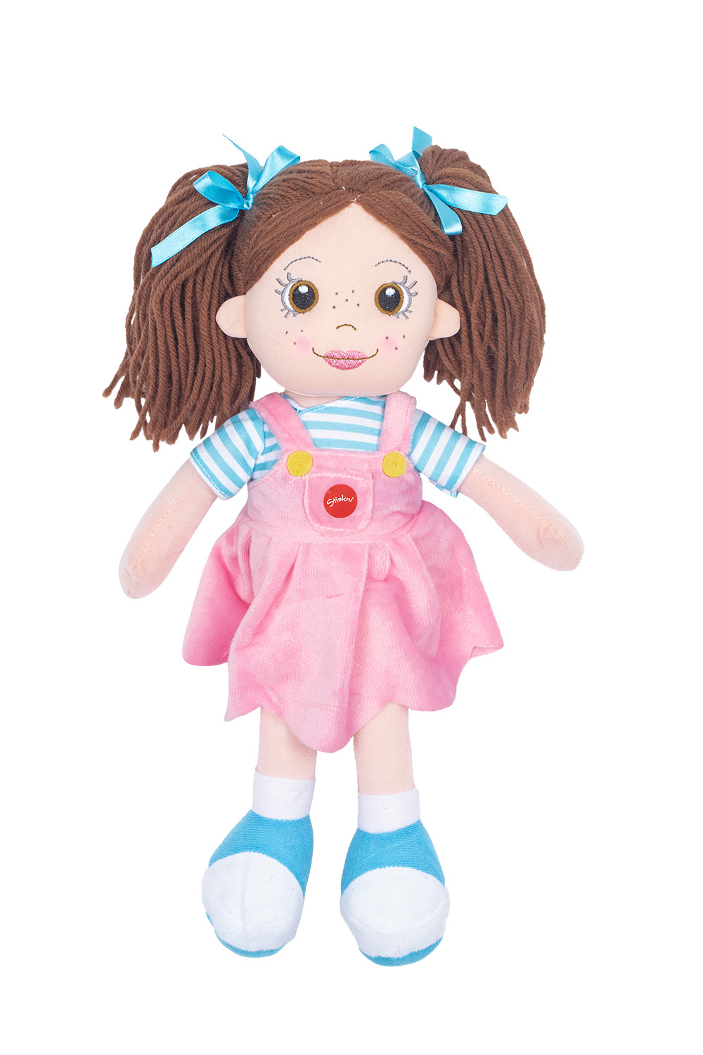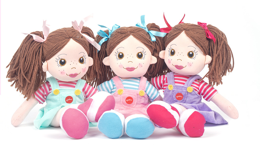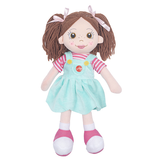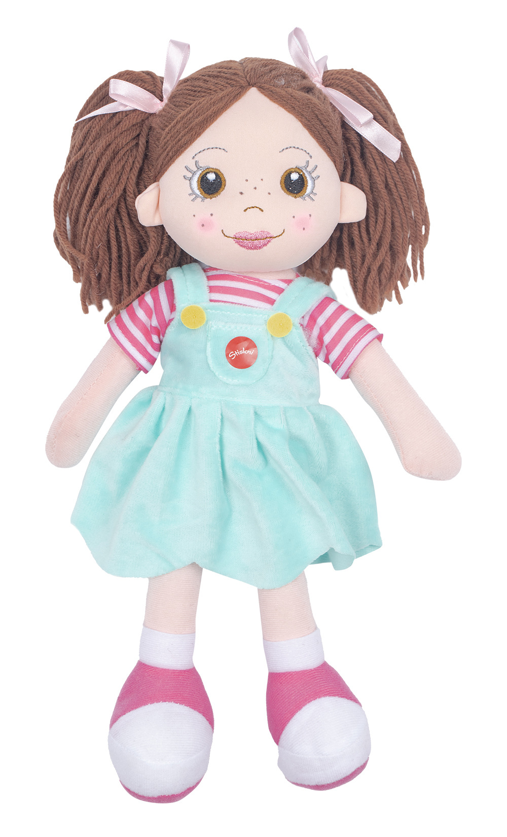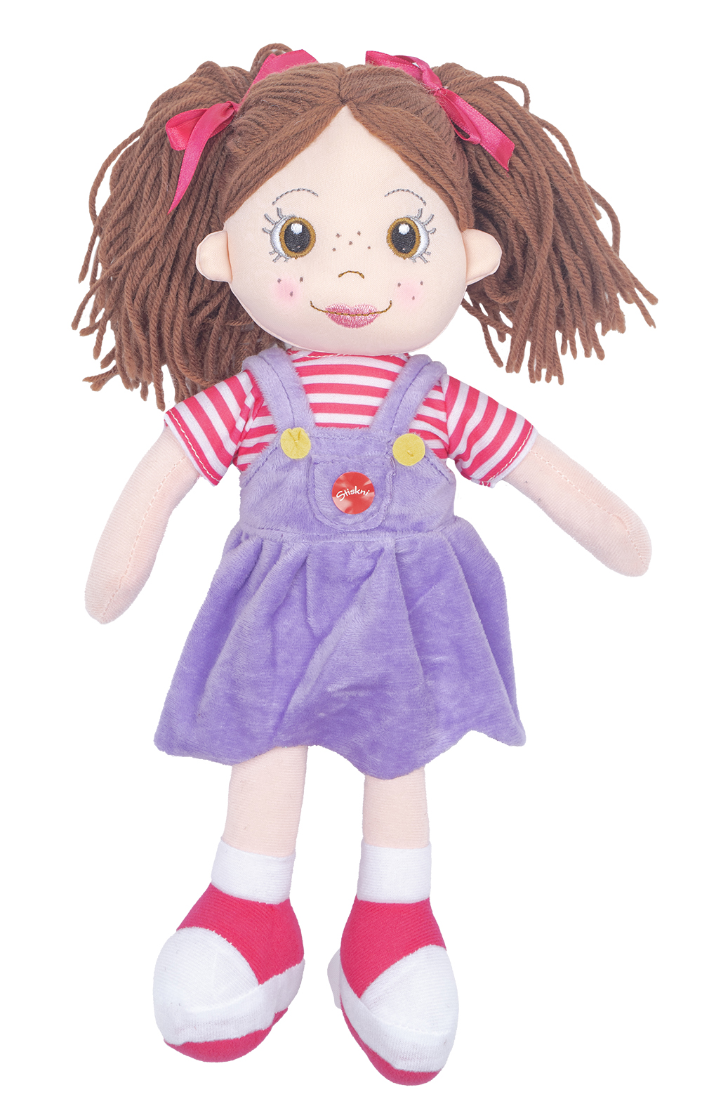 Látková panenka, která umí říkat básničky a zpívat písničky. Velikost 35 cm.