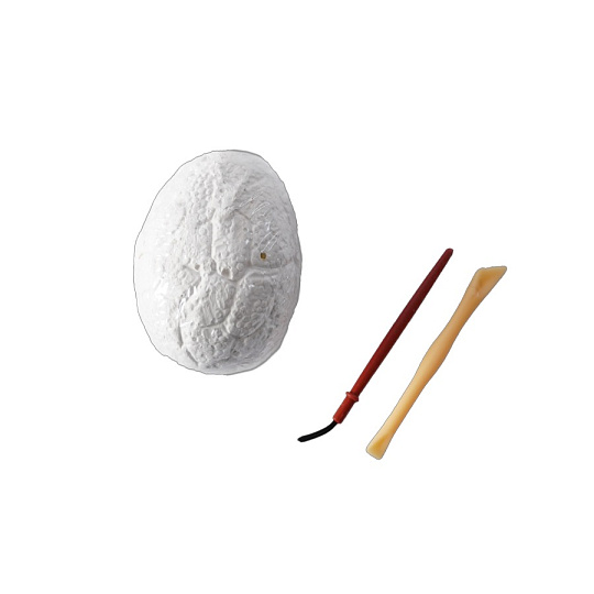Uvnitř vajíčka je ukryta figurka dinosaura, kterou můžete vykutat pomocí přiložených nástrojů.