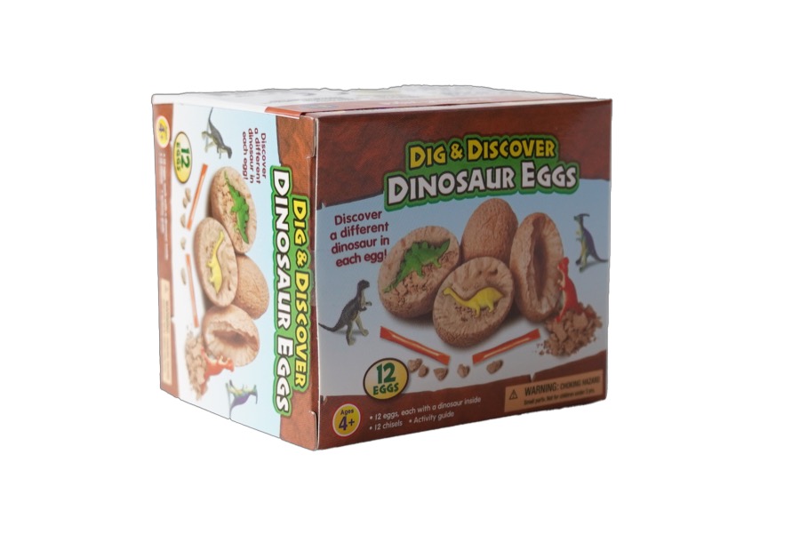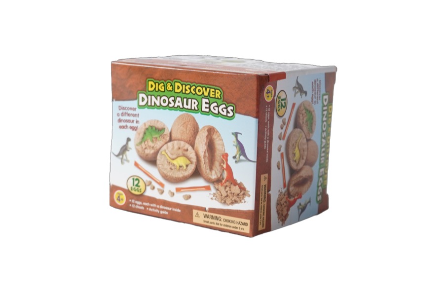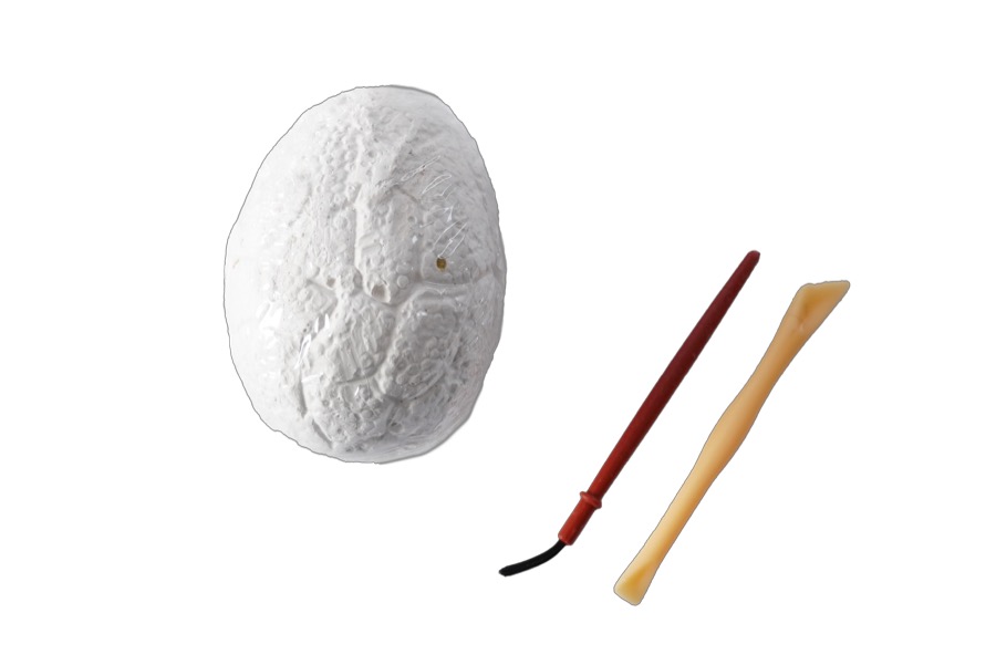 Uvnitř vajíčka je ukryta figurka dinosaura, kterou můžete vykutat pomocí přiložených nástrojů.