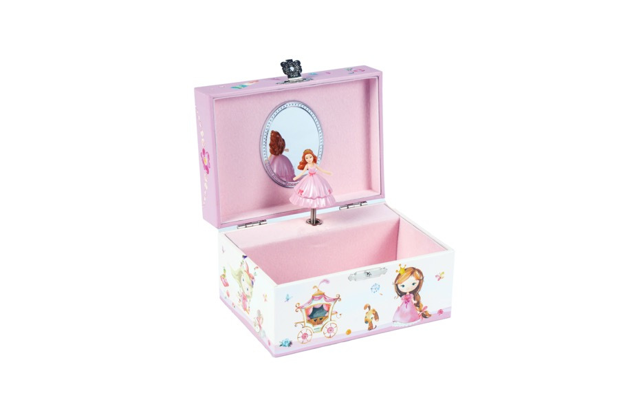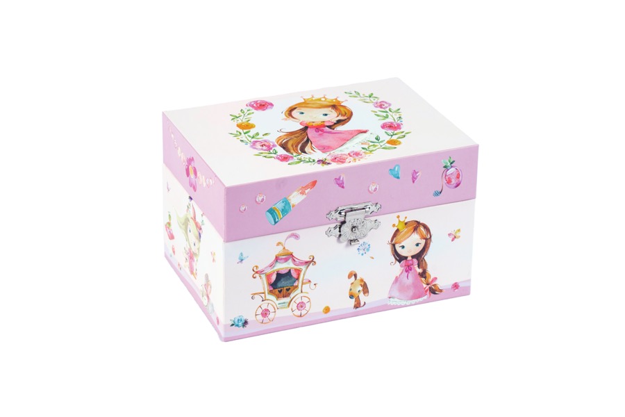 Hrací skříňka s princeznou, která se točí. Skříňka po otevření hraje a princezna se točí. Vyrobeno z tvrdého odolného papíru.