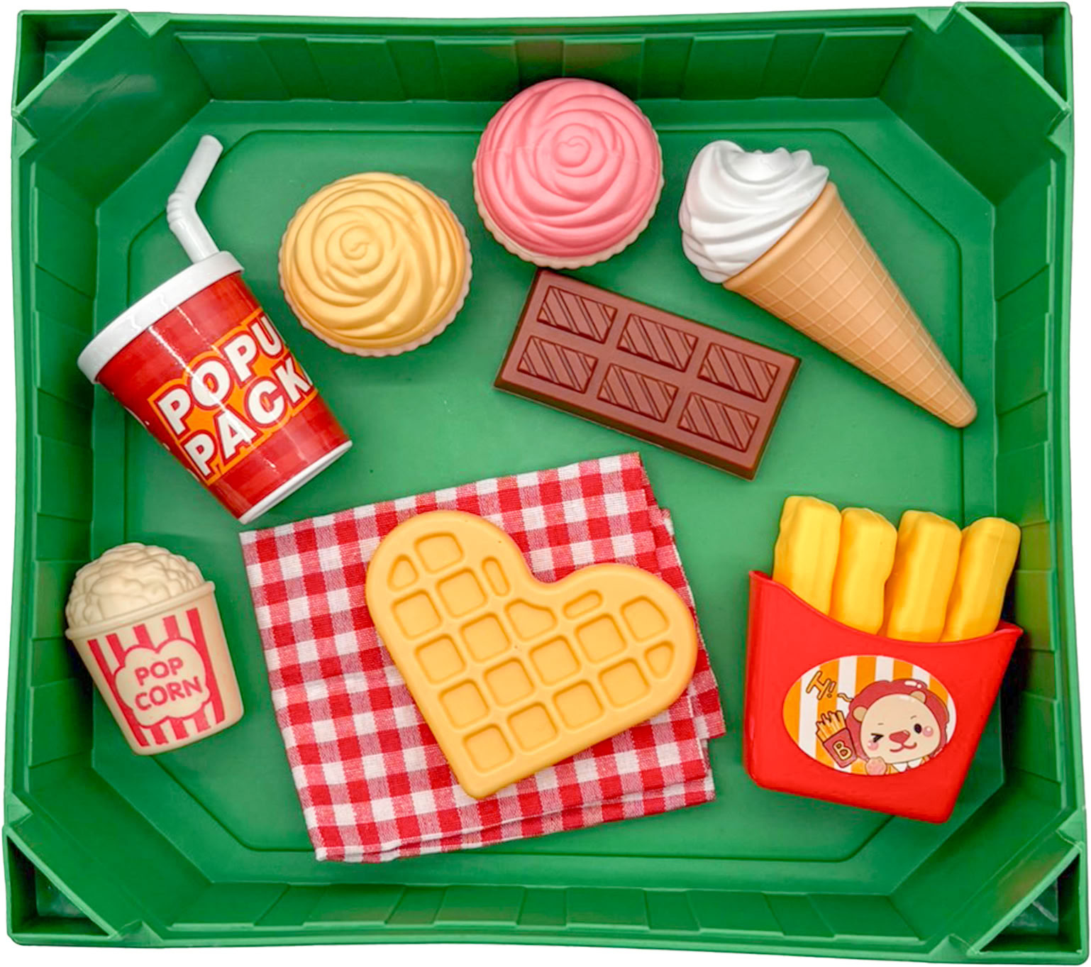 Sladké pohoštění: Sada obsahuje vše, co potřebujete pro sladké piknikové posezení. Děti si mohou připravit a "servírovat" různé dezerty, které vypadají jako skutečné.