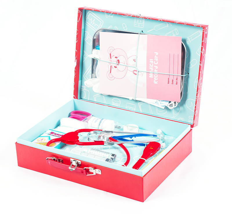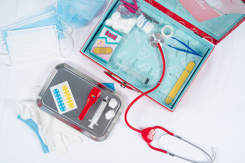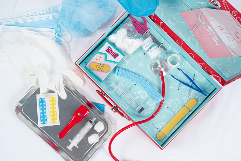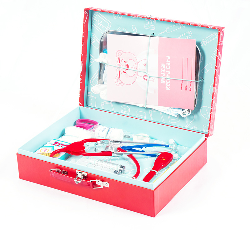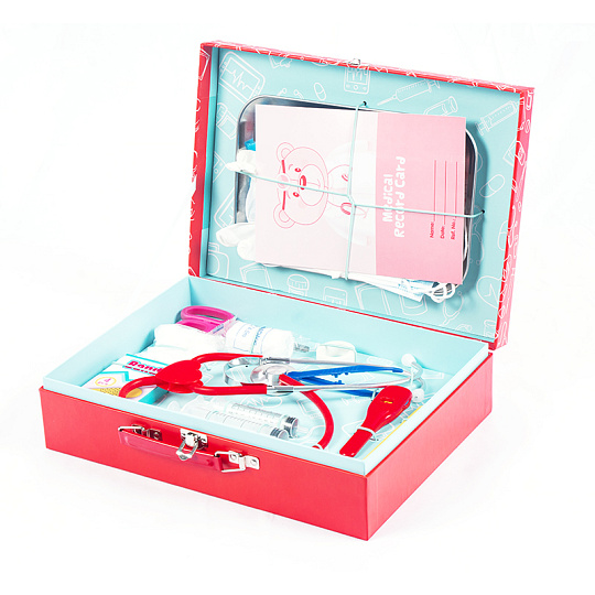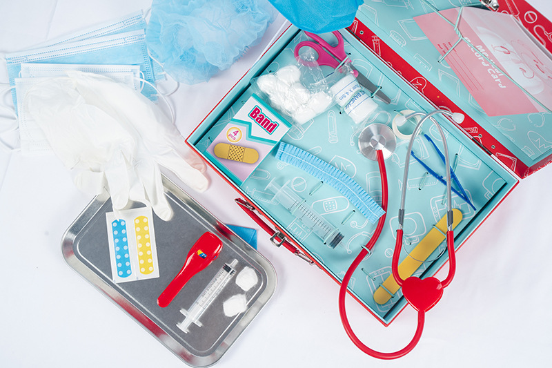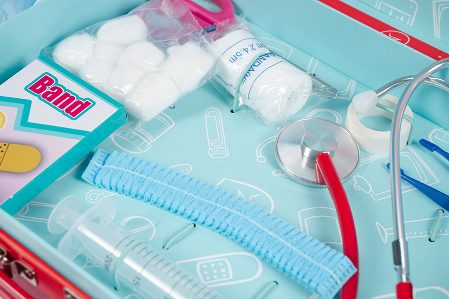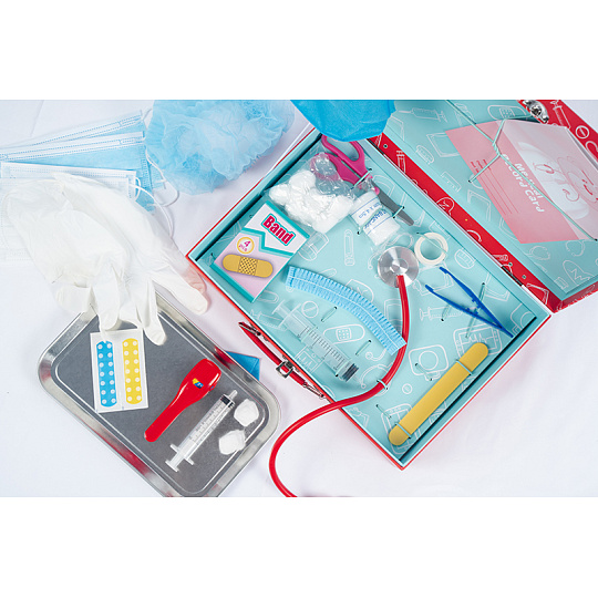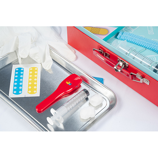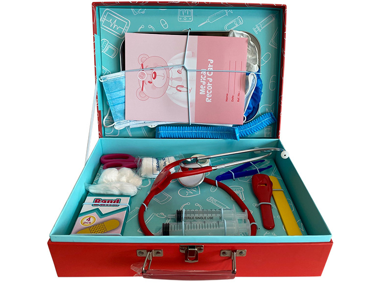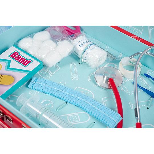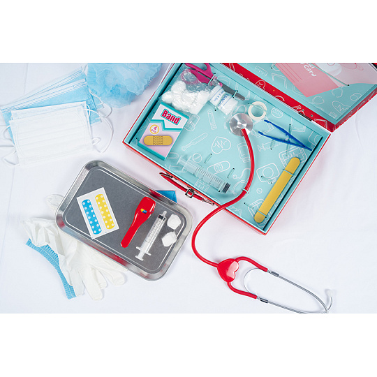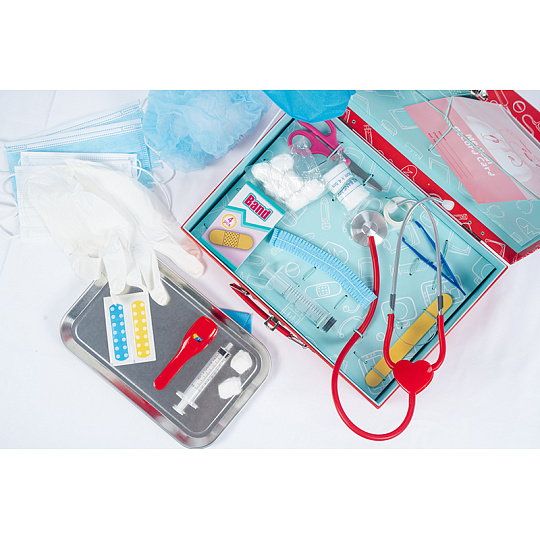kufřík 27 kusů . Velké příslušenství, které potřebuje každý lékař. Funkční stetoskop, náplasti, injekce....