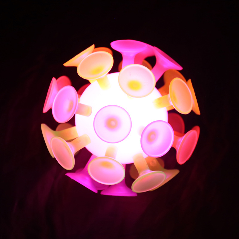 Plastový míček je pokrytý přísavkami, které si přisajou po vhození na hladký povrh. Při pohybu míček svítí.