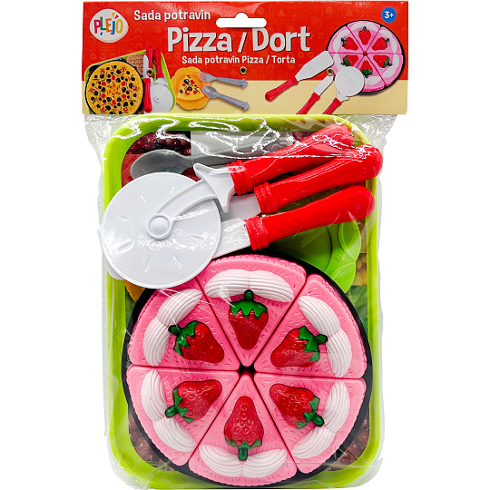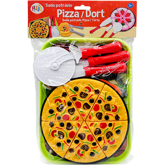 Sada plastových potravin, Pizza nebo dort.