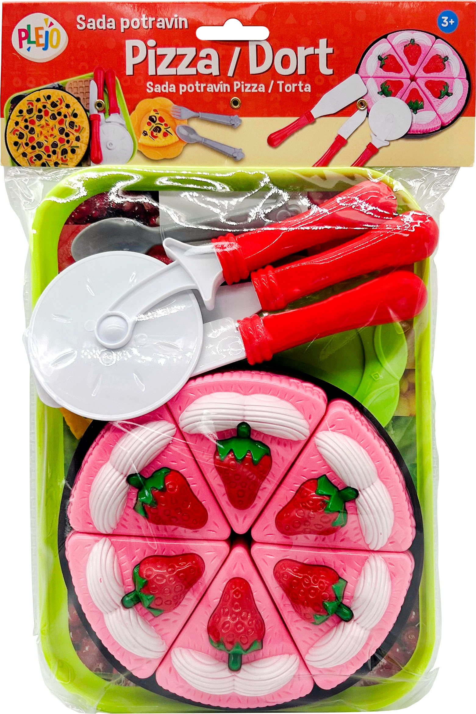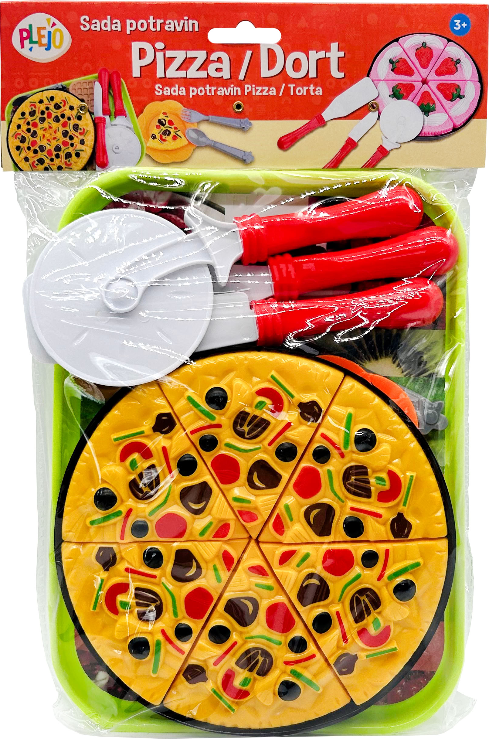 Sada plastových potravin, Pizza nebo dort.