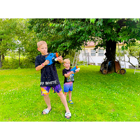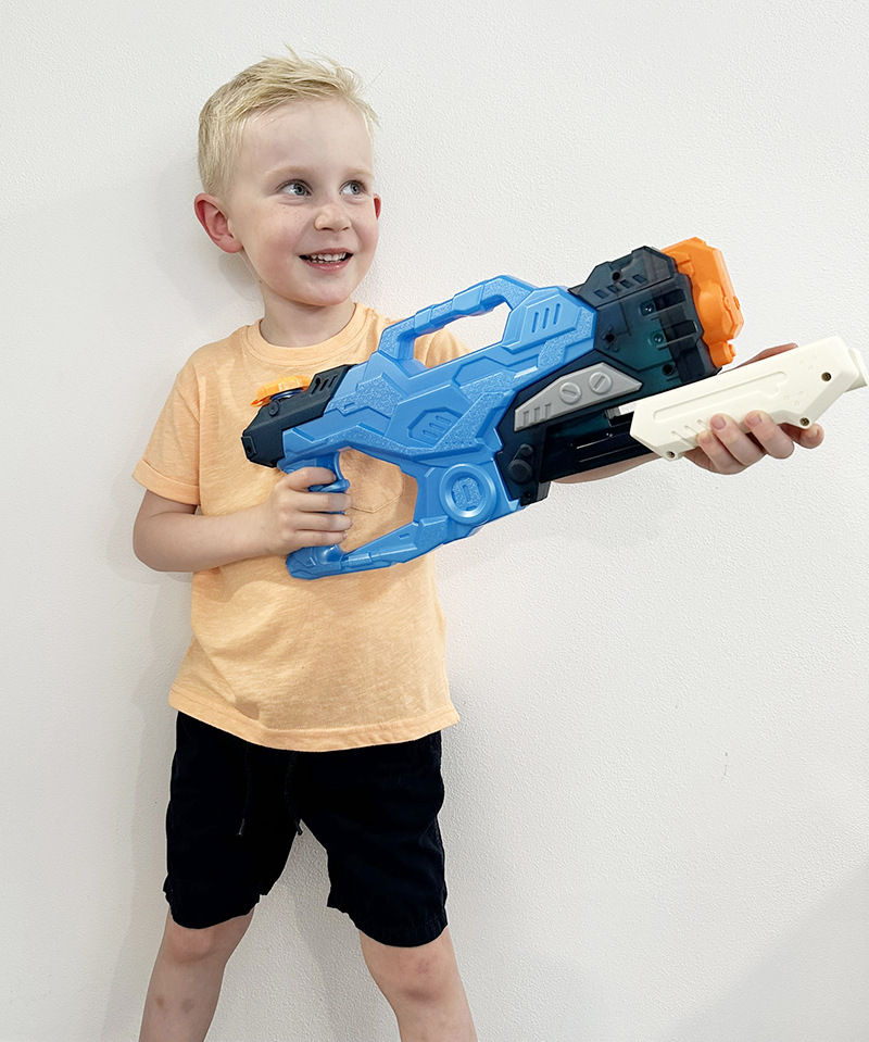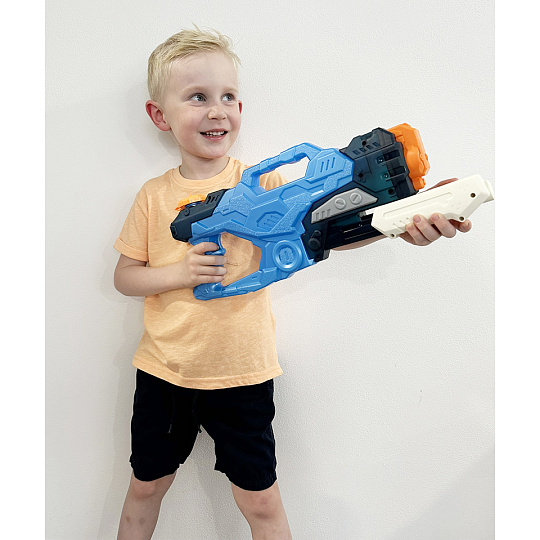 Pevná a krásná vodní pistole se třemi tryskami. Pistole má 1000 ml velký zásobník na vodu. Boj bude dlouhý. Velký zásobník ho zaručí.