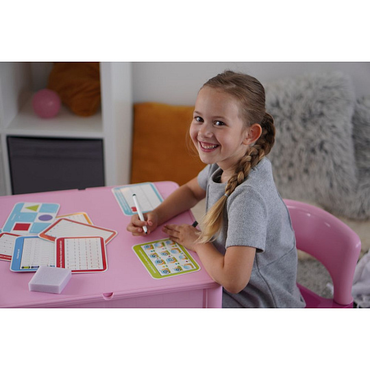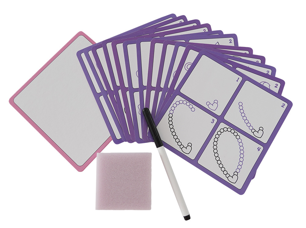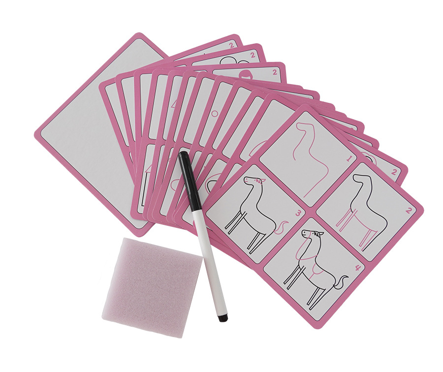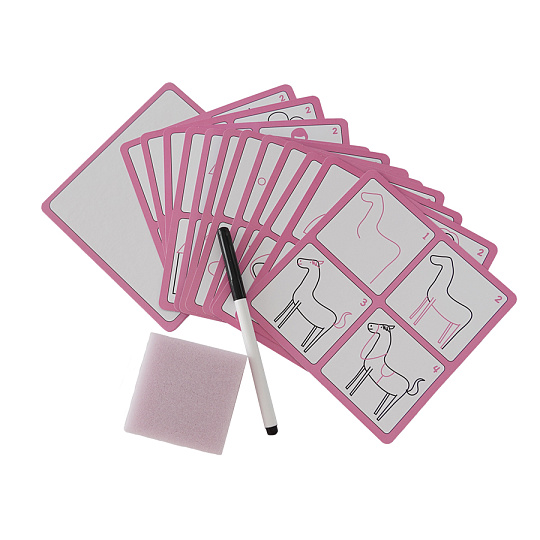 Edukativní sada učím se kreslit krok za krokem trénuje šikovnost a soustředěnost dítěte. Uči děti být pečlivý a trpělivý. Sada obsahuje 12 kartiček s obrázky, speciálni fix, který jde smazat a houbičku. Kartičky jsou opakovatelně použitelné.