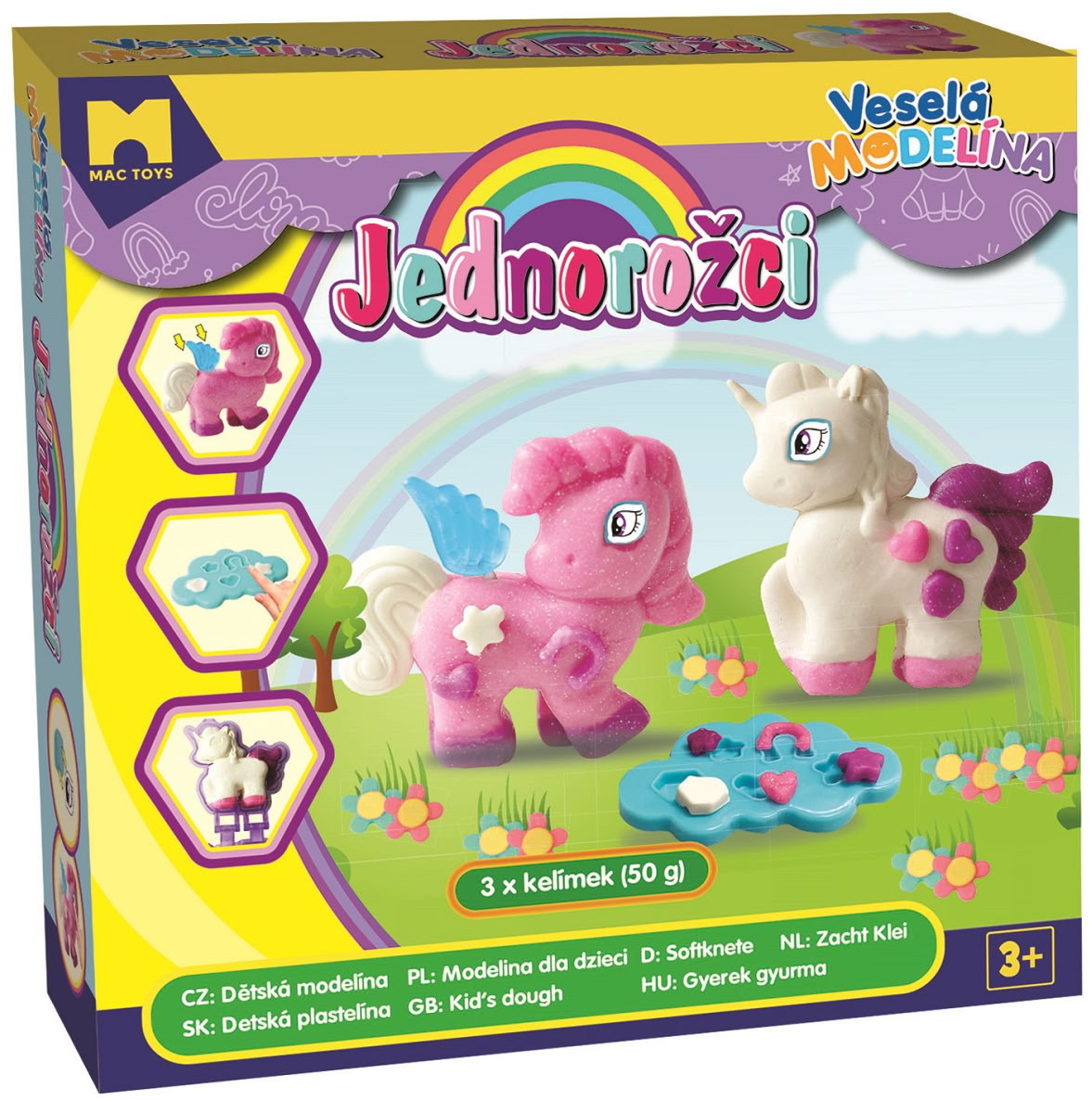 Modelína je lehce tvarovatelná, nevysychá a v uzavřené doze netvrdne. Sada je barevně i tématicky laděna do světa jednorožců. Veselá modelína obsahuje 3x kelímek 50 g a tvořítka na výrobu jednorožců.