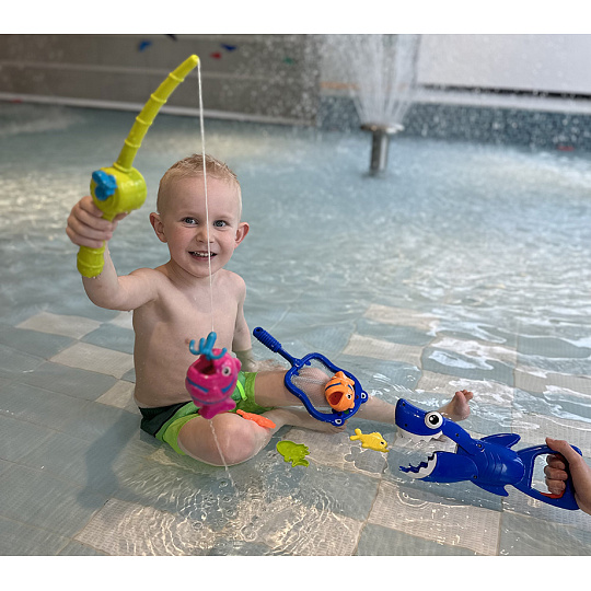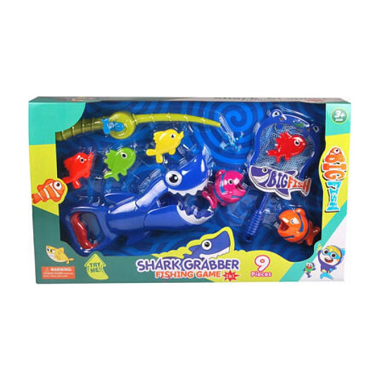 Prut, síťka a hrůzostrašný žralok, který pochytá všechny plastové rybičky. Vhodné do bazénu nebo vany.