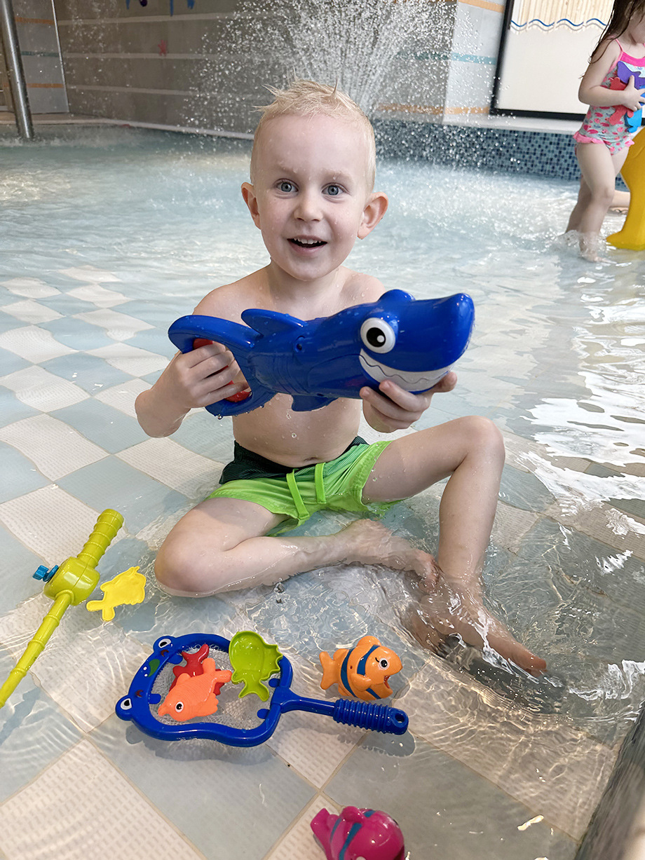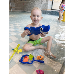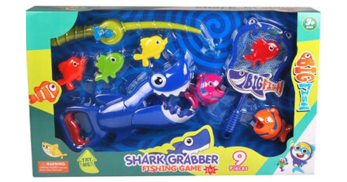 Prut, síťka a hrůzostrašný žralok, který pochytá všechny plastové rybičky. Vhodné do bazénu nebo vany.