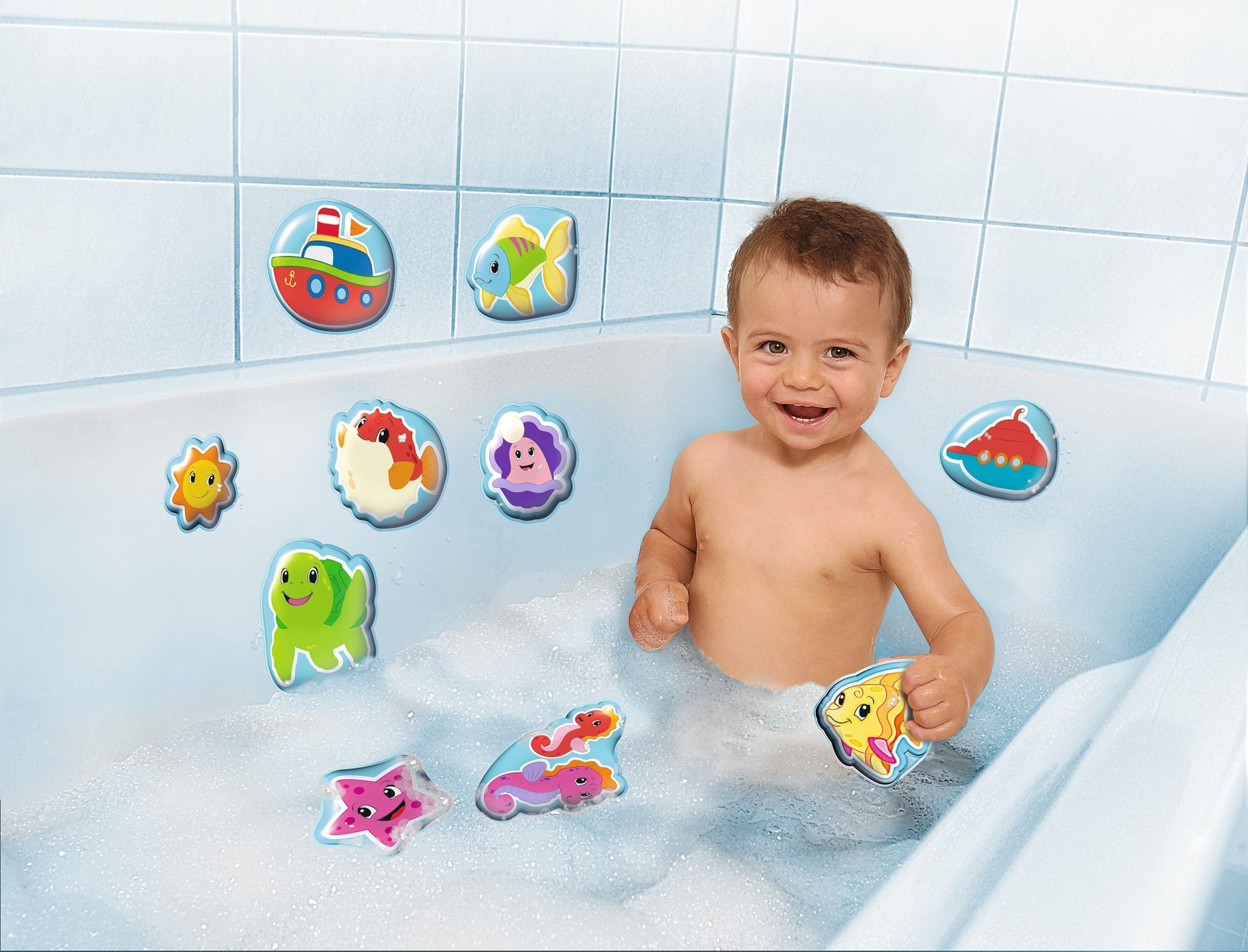 Sada 3 různých aktivit pro hraní ve vaně. Každá s přísavkou. Hrneček součástí. Celkem obsahuje 4 ks.