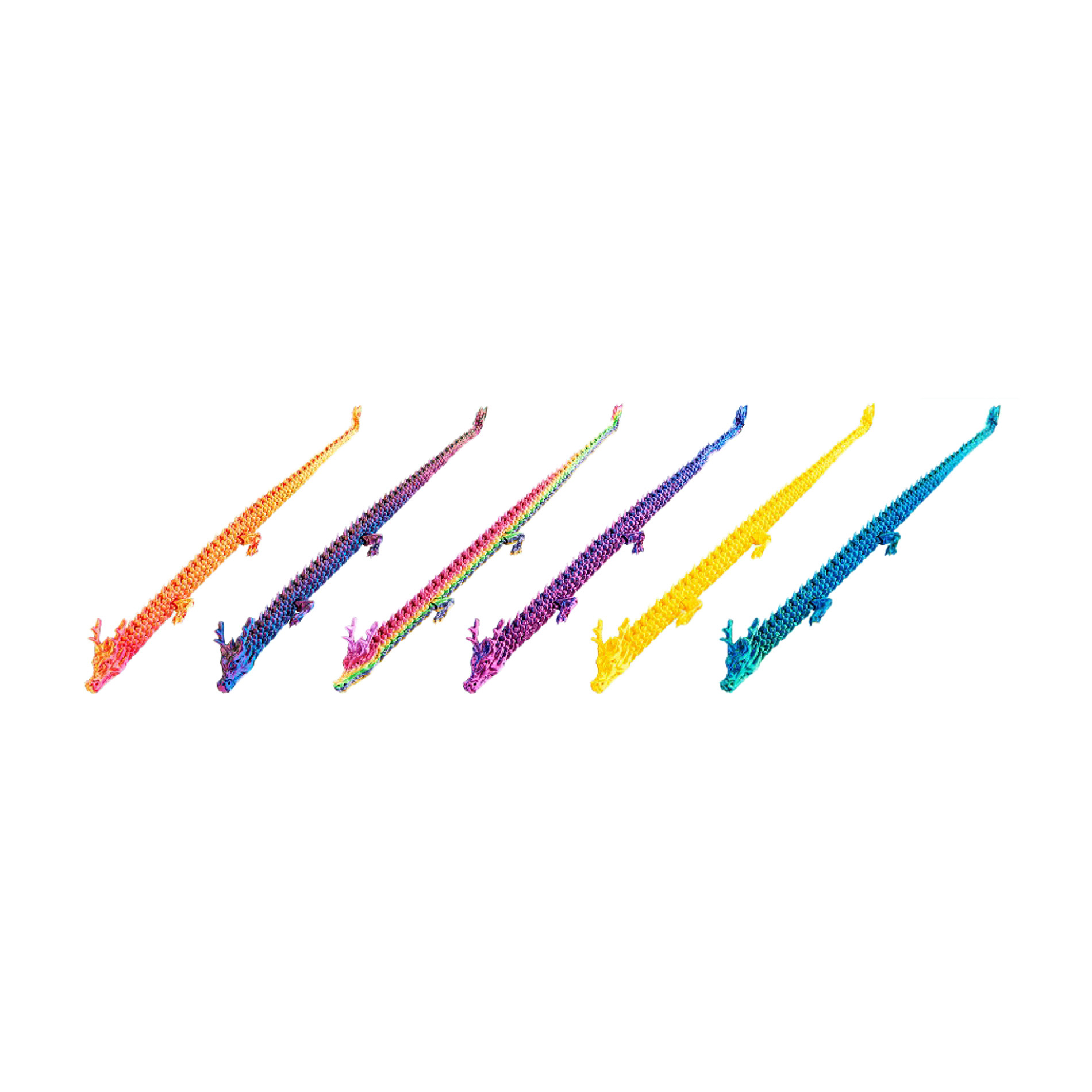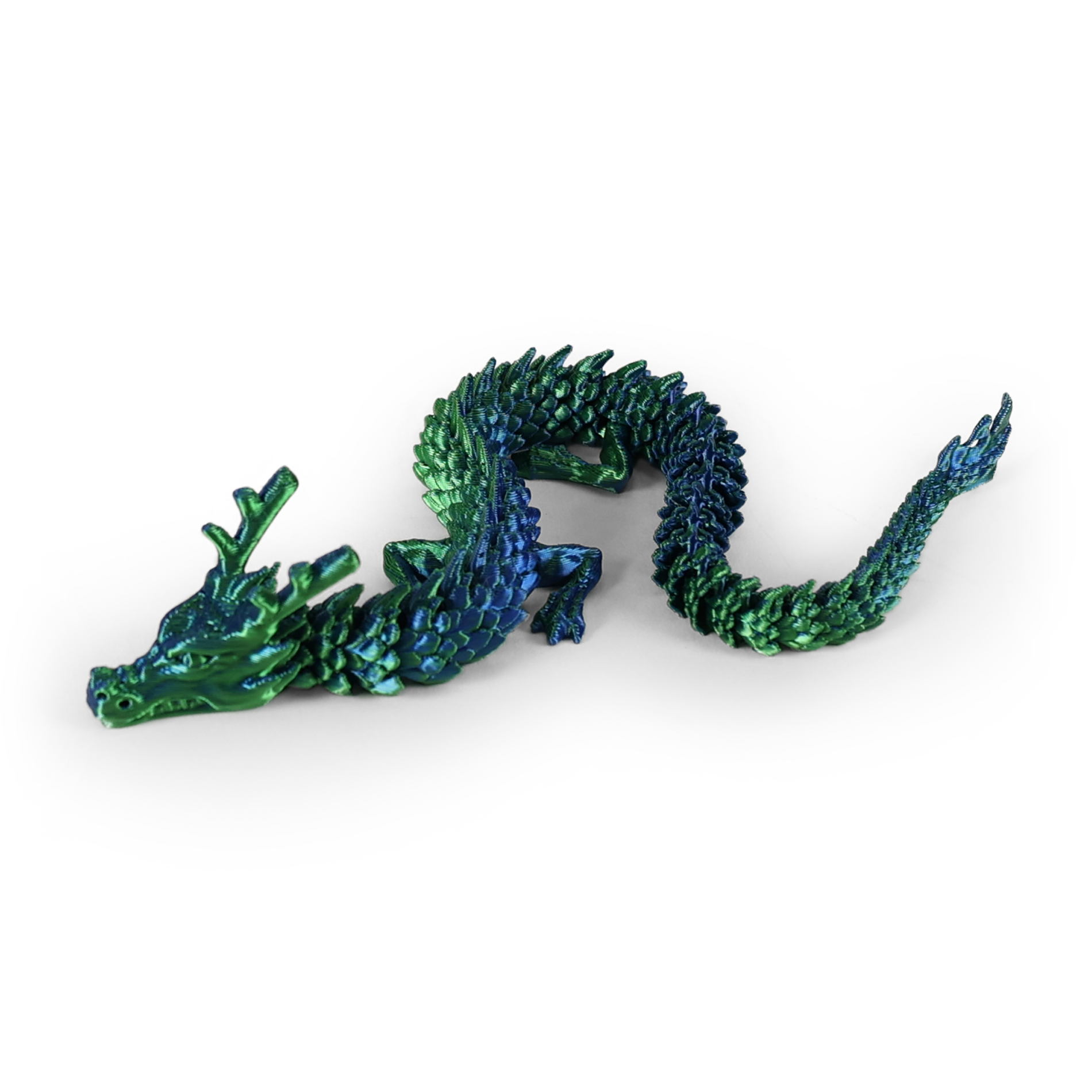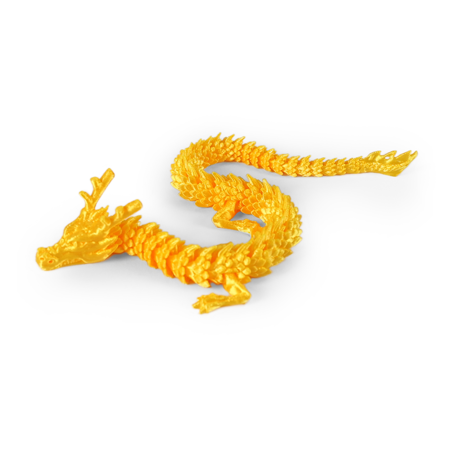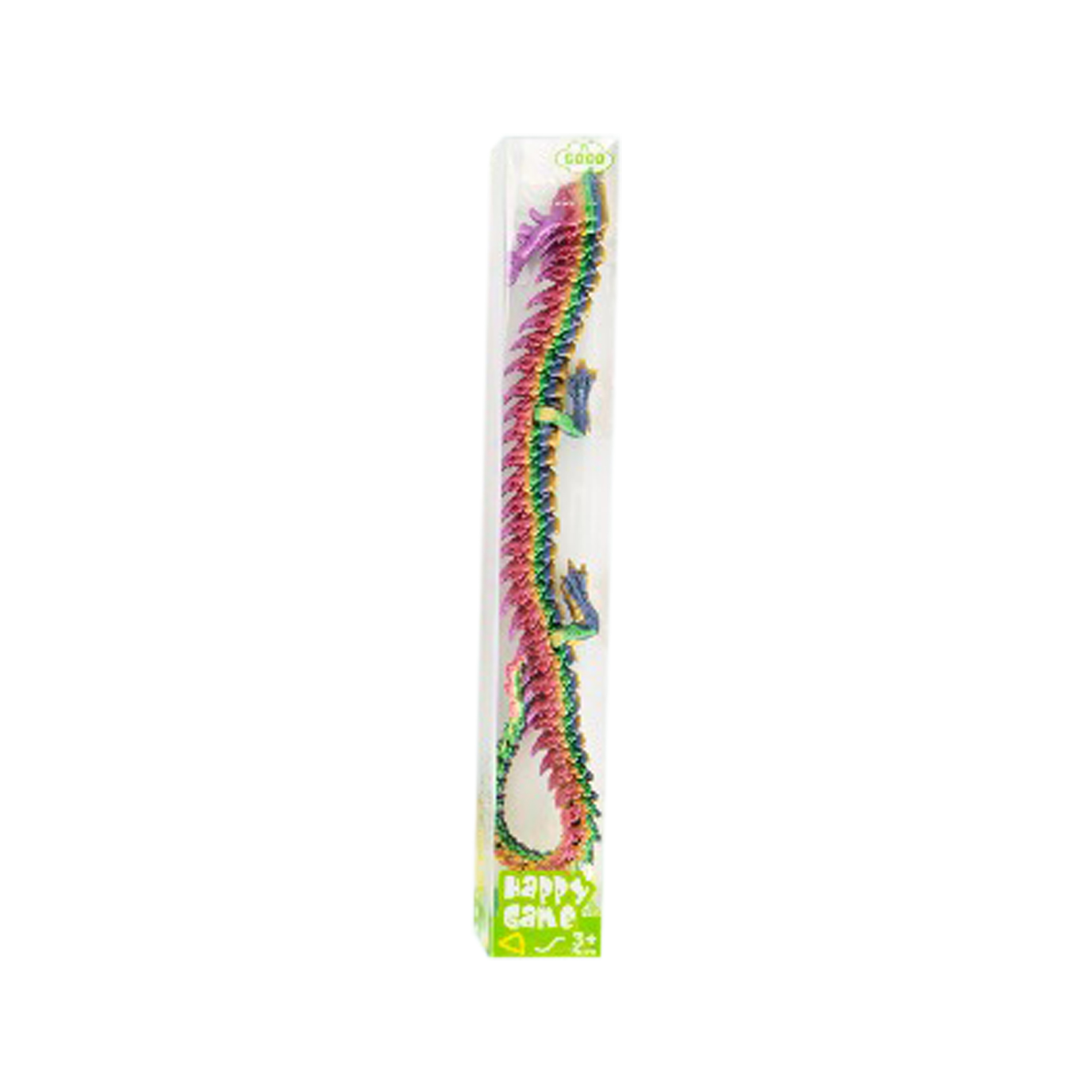 Zábavná hračka v podobě čínského draka o délce cca 29 cm upoutá svým originálním vzhledem i pohyblivostí. Díky konstrukci z jednotlivých dílků lze draka snadno ohýbat, kroutit a tvarovat do různých pozic, což přináší nekonečné možnosti zábavy. Drak působí téměř magicky díky svému atraktivnímu provedení s jemným kovovým nádechem, který mu dodává jedinečný a poutavý vzhled. Skvěle se hodí jako žertovinka, dekorace nebo hračka pro kreativní hraní.