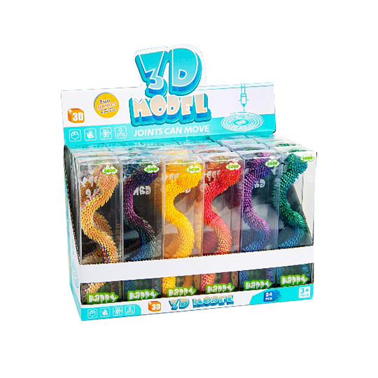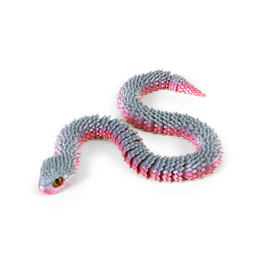Originální hračka v podobě zmije o délce cca 30 cm zaujme na první pohled svým neobvyklým vzhledem i pohyblivostí. Díky konstrukci z jednotlivých dílků lze hada snadno ohýbat, kroutit a nastavovat do různých pozic, což zaručuje spoustu zábavy i překvapení. Zmije působí téměř magicky díky svému kovově lesklému povrchu, který jí dodává atraktivní a tajemný vzhled. Skvěle se hodí jako žertovinka, dekorace nebo hračka pro kreativní hraní.