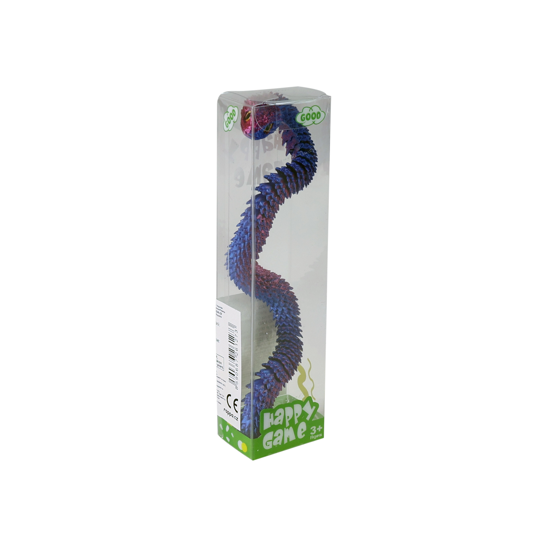 Originální hračka v podobě zmije o délce cca 30 cm zaujme na první pohled svým neobvyklým vzhledem i pohyblivostí. Díky konstrukci z jednotlivých dílků lze hada snadno ohýbat, kroutit a nastavovat do různých pozic, což zaručuje spoustu zábavy i překvapení. Zmije působí téměř magicky díky svému kovově lesklému povrchu, který jí dodává atraktivní a tajemný vzhled. Skvěle se hodí jako žertovinka, dekorace nebo hračka pro kreativní hraní.