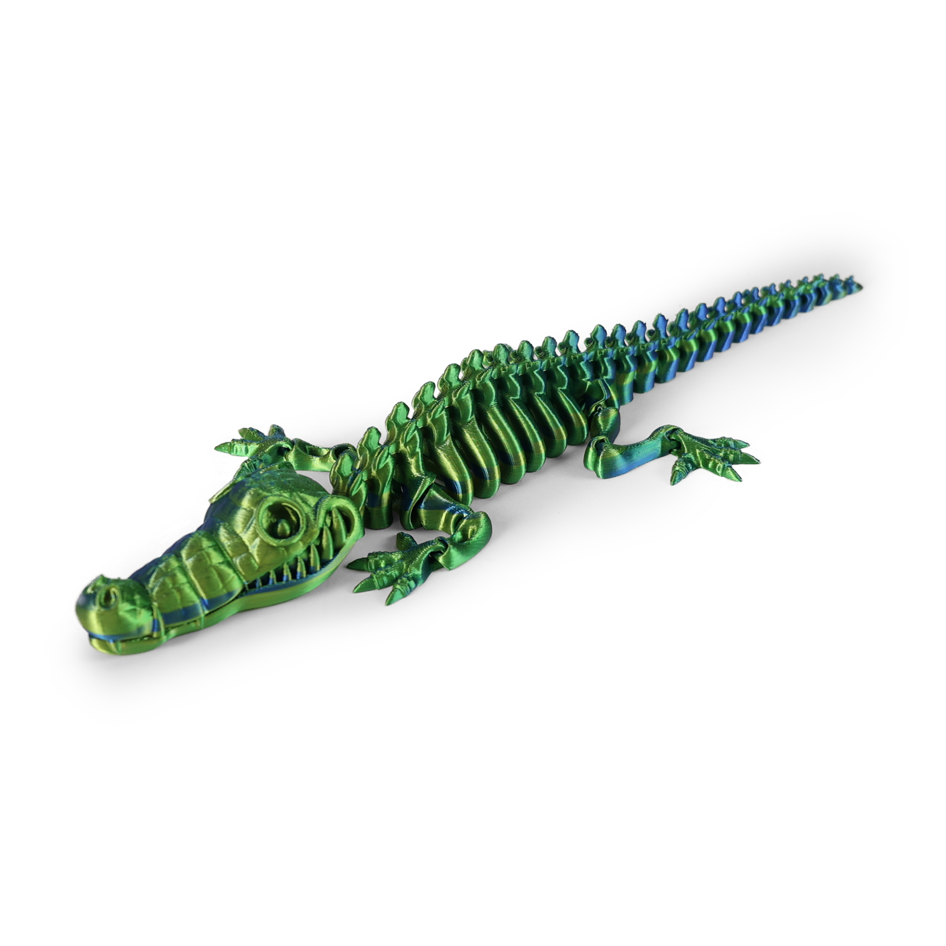 Originální hračka v podobě krokodýla o délce cca 33 cm zaujme svým originálním vzhledem i skvělou pohyblivostí. Díky konstrukci z jednotlivých dílků lze krokodýla snadno ohýbat a tvarovat do různých pozic, což přináší spoustu kreativní zábavy. Atraktivní provedení s jemným kovovým nádechem dodává hračce jedinečný a lehce magický vzhled. Skvěle se hodí jako žertovinka, dekorace nebo doplněk pro hravé chvíle.