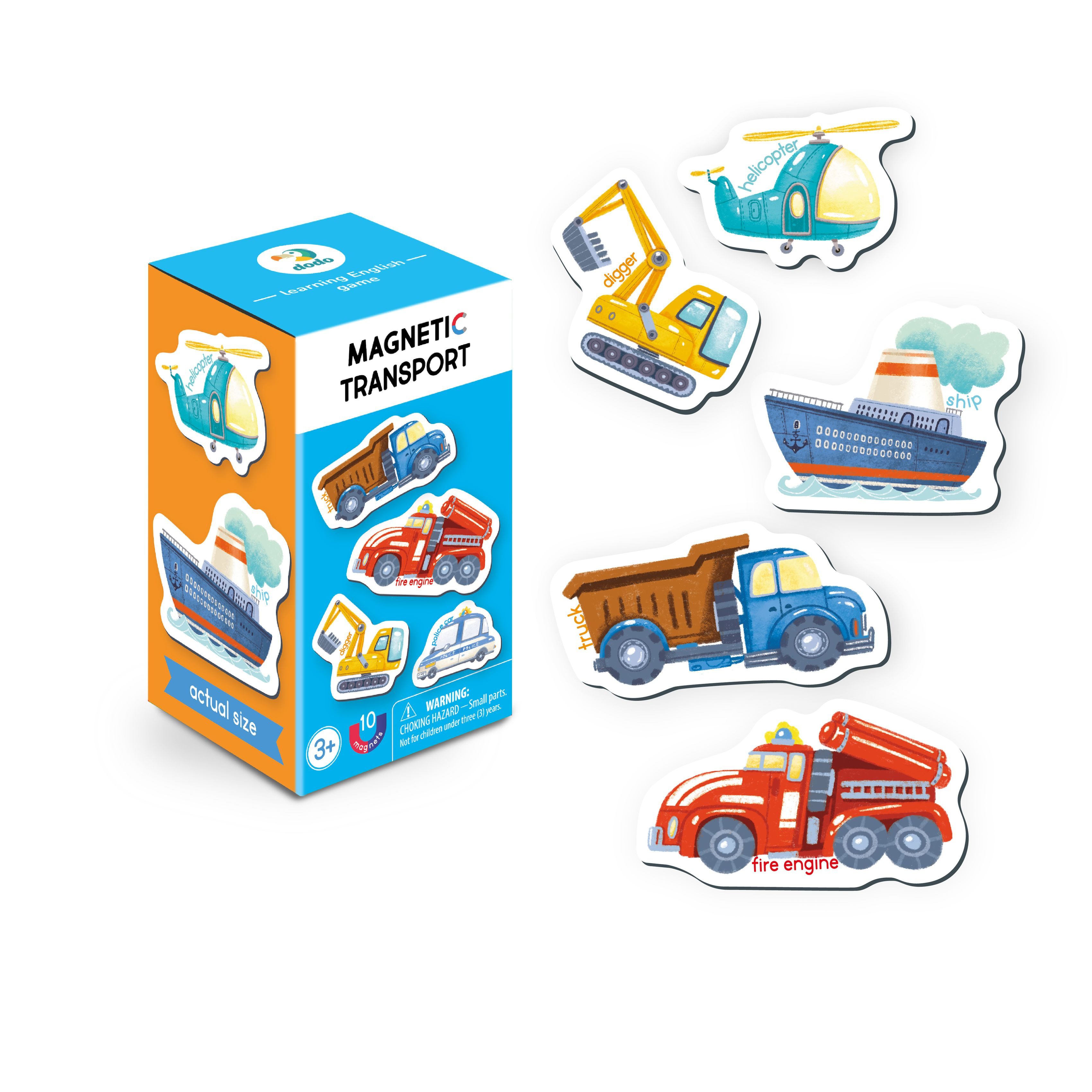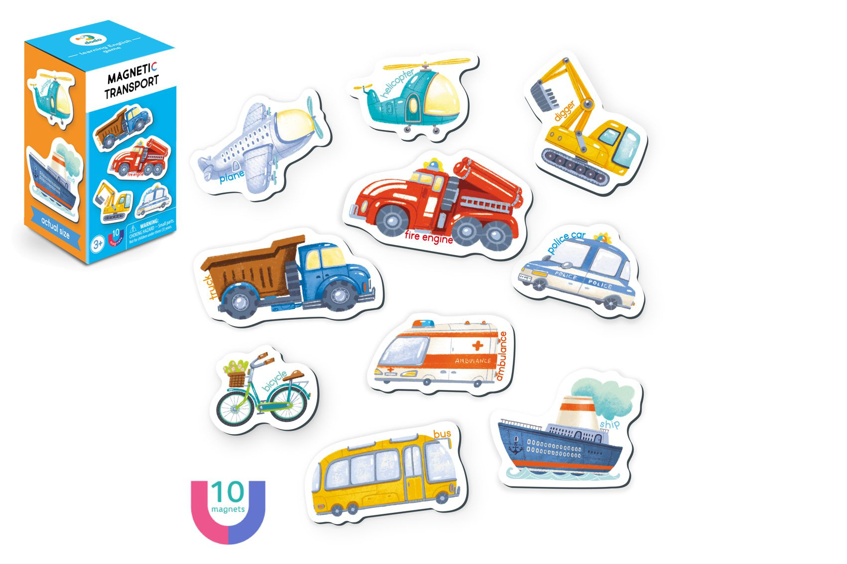 Tato sada magnetů s motivem dopravních prostředků obsahuje poutavé obrázky s anglickými názvy, které budou inspirací pro nekonečné hodiny kreativní hry, ale také dopomocí při učení angličtiny. Balení obsahuje 10 kusů Rozměry balení: 7x12x7cm Vhodné pro děti od 3 let