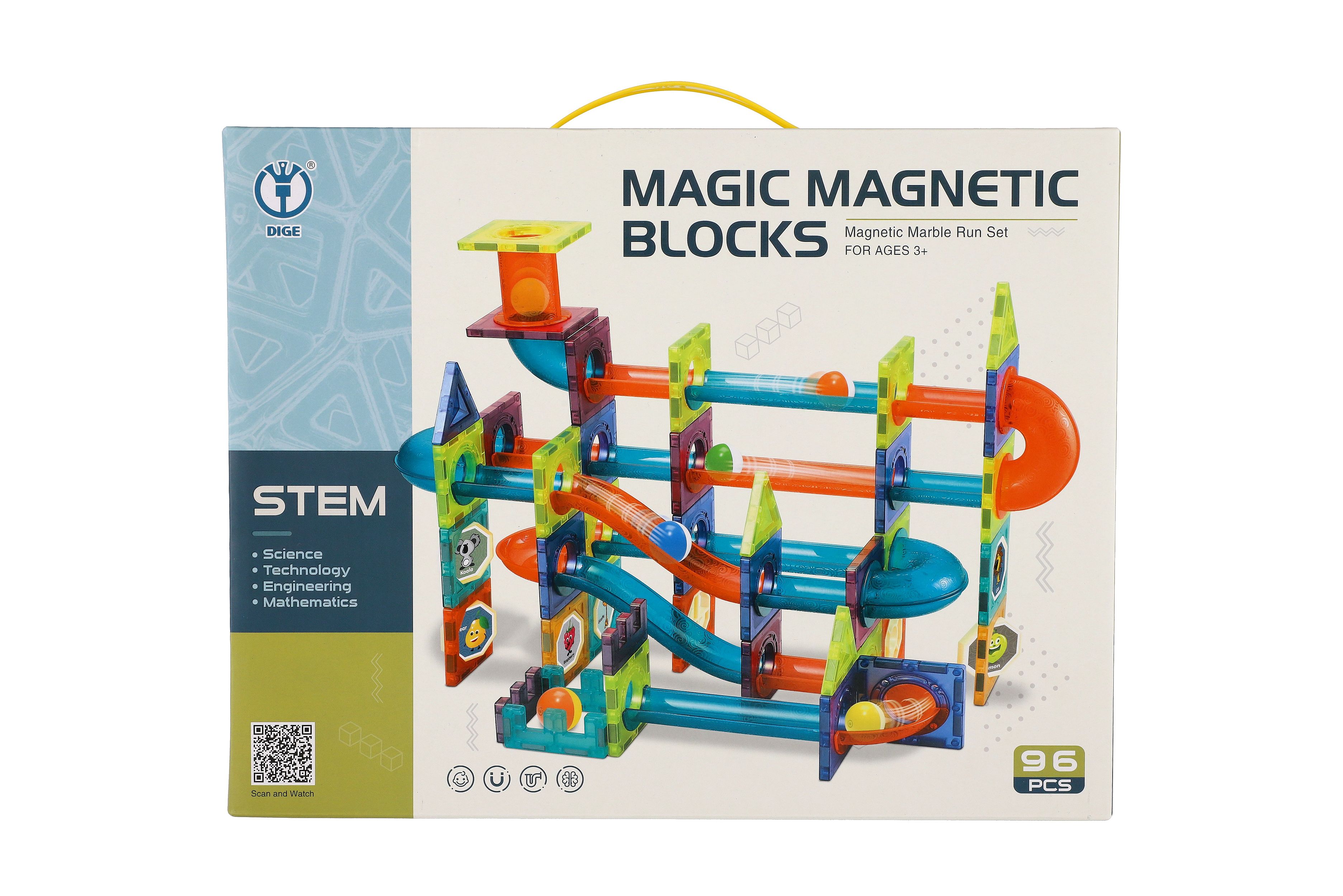 Kuličková dráha magnetická stavebnice plast 96ks v krabici 36x28x9cm