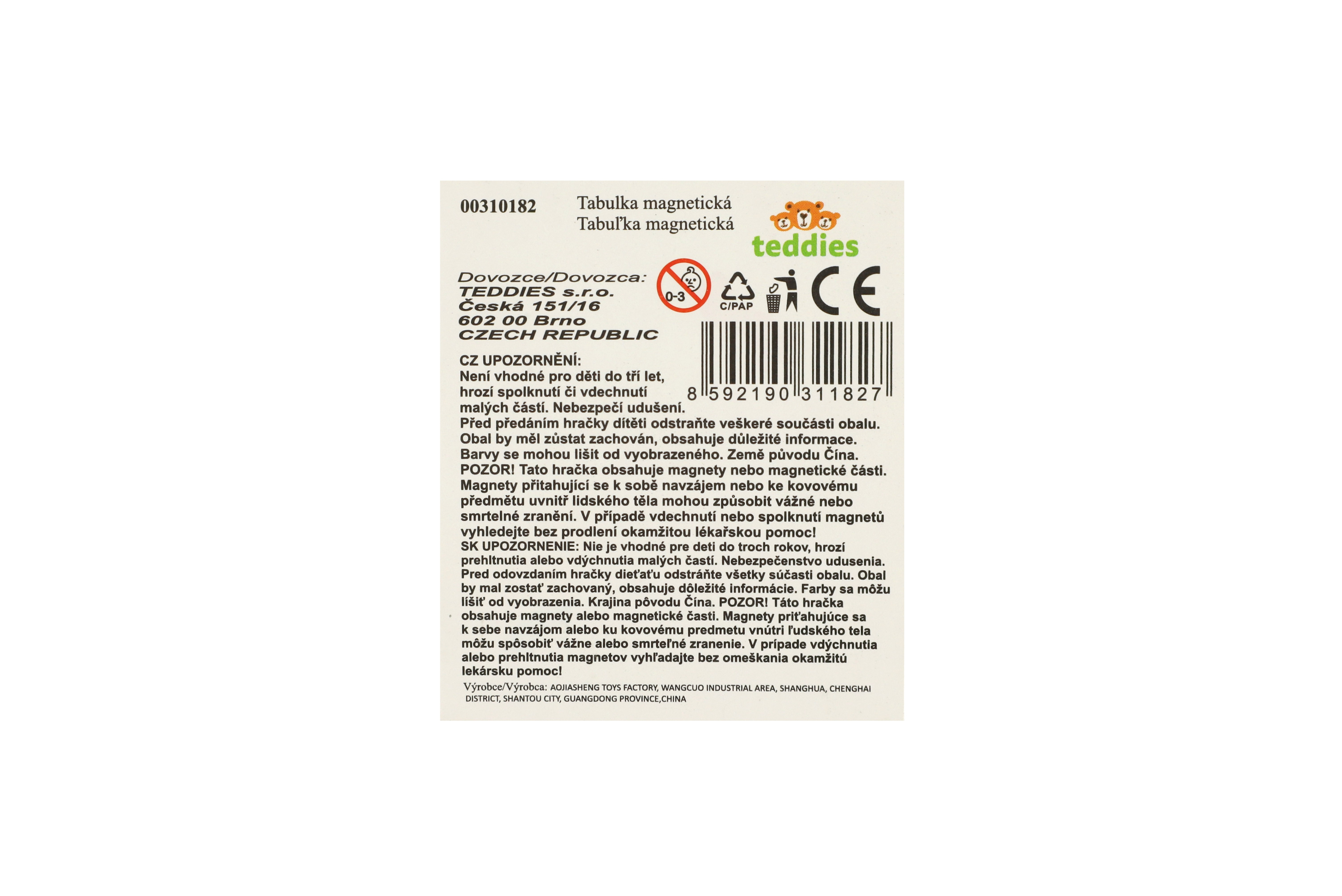 Magnetická tabulka kreslící plast 15x13cm 4 barvy v sáčku 24ks v boxu