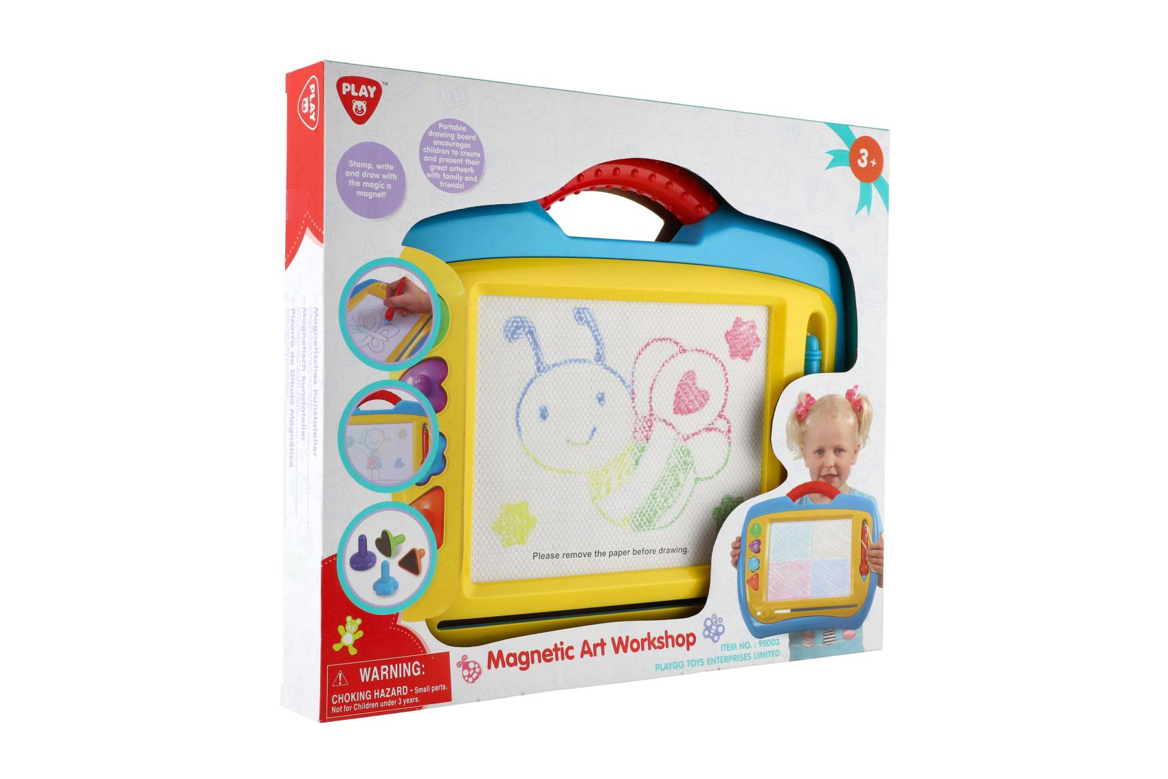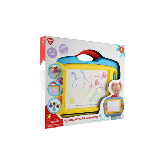 Začíná vaše dítě malovat po všech čistých plochách, které vaše domácnost nabízí? Dopřejte mu z malování ještě větší radost. Díky magnetické tabulce vaše dítě namaluje magnetickou tužkou své dílo, aniž by ušpinilo sebe, své okolí nebo spotřebovalo papír. Lehkým pohybem ze strany na stranu, lze celé dílo smazat a začít znovu. Rozměr krabice: 38 x 32 x 5 cm Vhodné od 3 let.
