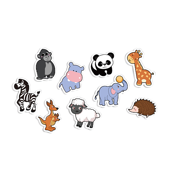 Magnetky zvířátek z pěnovky, které si sám vyrobíš! Sada obsahuje podložku, 9 výřezků různých zvířat z pěnovky, 9 nálepek a příslušný počet magnetů.