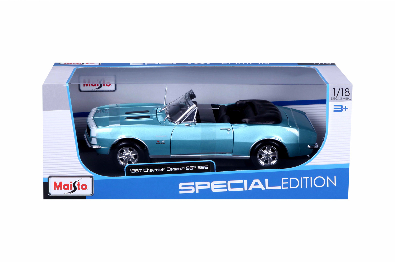 Maisto - 1967 CHEVROLET CAMARO SS 396 CONVERTIBLE, metal tyrkysová, 1:18