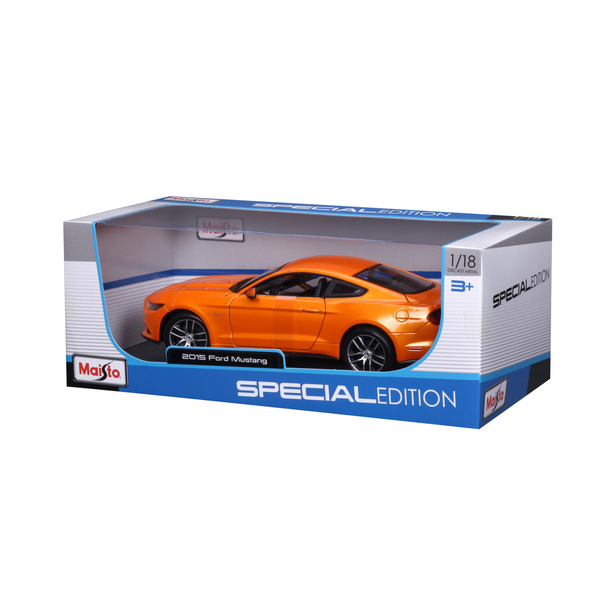 Special Edition 1:18 2015 Ford Mustang GT. Modely Special Edition jsou sbírkou krásného designu s vysokým důrazem na přesnost detailů. Modely jsou vyrobeny z litého kovu s plastovými detaily. Většina z modelů Special Edition v měřítku 1:18 má otevírací dveře, kufr nebo kapotu. Navíc disponují odpružením všech čtyř kol, plně funkčním řízením a u některých modelů lze nastavit polohu opěradla. Baleno v krabičce. Nevhodné pro děti do 3 let. Rozměry balení: 12,4 x 33 x 16,4 cm. Věk 3+