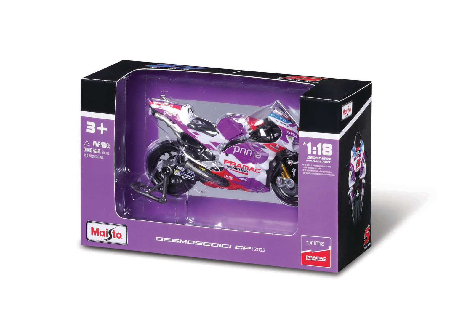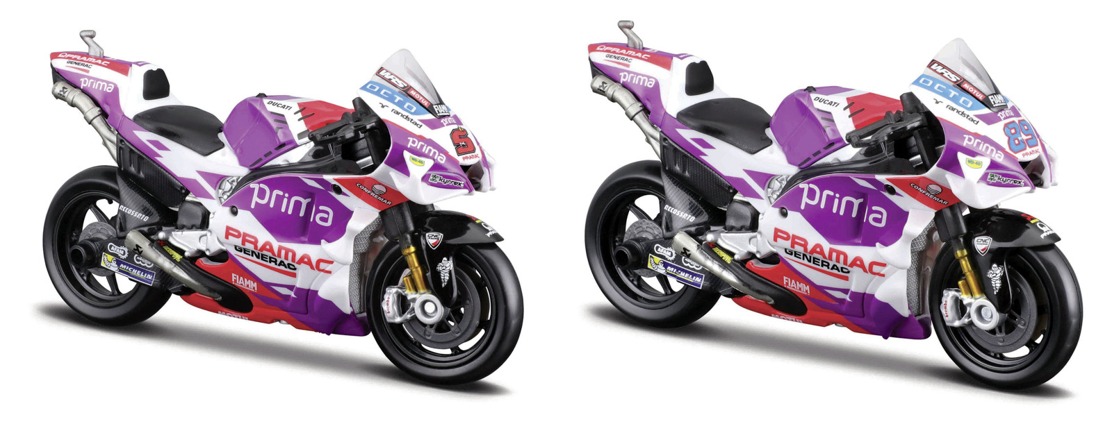 Maisto - Motocykl, Ducati Pramac racing 2022 (#5 JOHANN ZARCO,#89 JORGE MARTIN), assort, 1:18