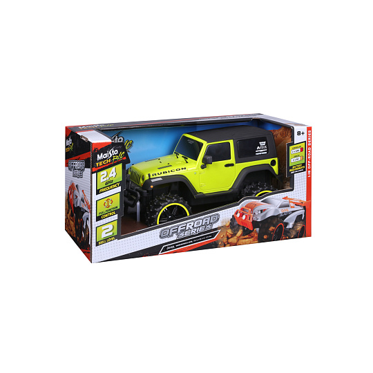 Jeep Wrangler Rubicon v měřítku 1:16, žlutá barva. Model na dálkové ovládání od značky Maisto. Terénní auto s velkými pneumatikami pro skvělý zážitek z jízdy. Auto funguje na 4x AA baterie (nejsou součástí). Ovladač má dosah až 35 metrů a používá 2x AAA baterie (nejsou součástí). Rozměr balení: 39,4x19,1x19,1 cm. Věk 8+ ... více