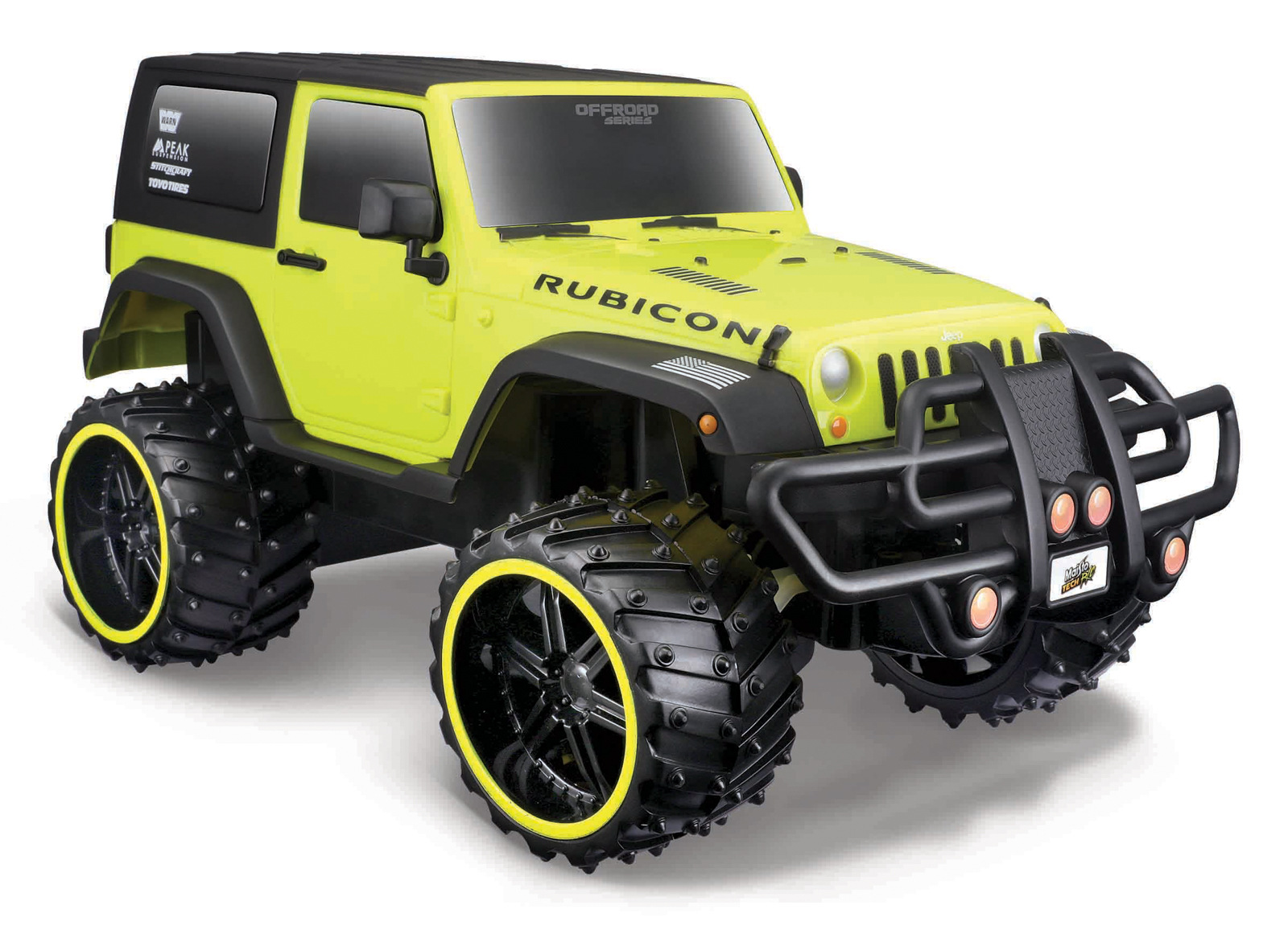 Jeep Wrangler Rubicon v měřítku 1:16, žlutá barva. Model na dálkové ovládání od značky Maisto. Terénní auto s velkými pneumatikami pro skvělý zážitek z jízdy. Auto funguje na 4x AA baterie (nejsou součástí). Ovladač má dosah až 35 metrů a používá 2x AAA baterie (nejsou součástí). Rozměr balení: 39,4x19,1x19,1 cm. Věk 8+ ... více