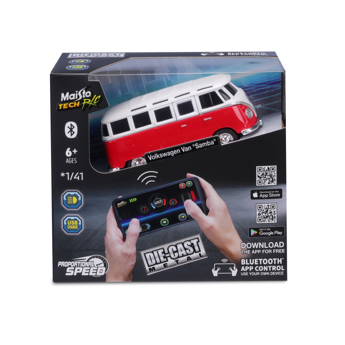 Maisto RC - DIE-CAST METAL so svetlami, Volkswagen Van Samba, 1:41, 2,4 GHz, USB, XTR, Bluetooth 5.0